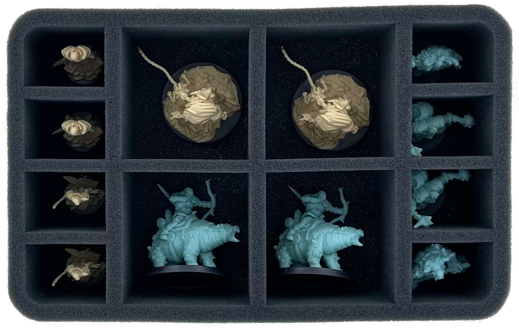 - 1 Half-Size foam tray with 12 compartments for infantry models like Ironskull Deathriders, Ice Shelf Polar Bears and Orc King (HSMFAA070BO)