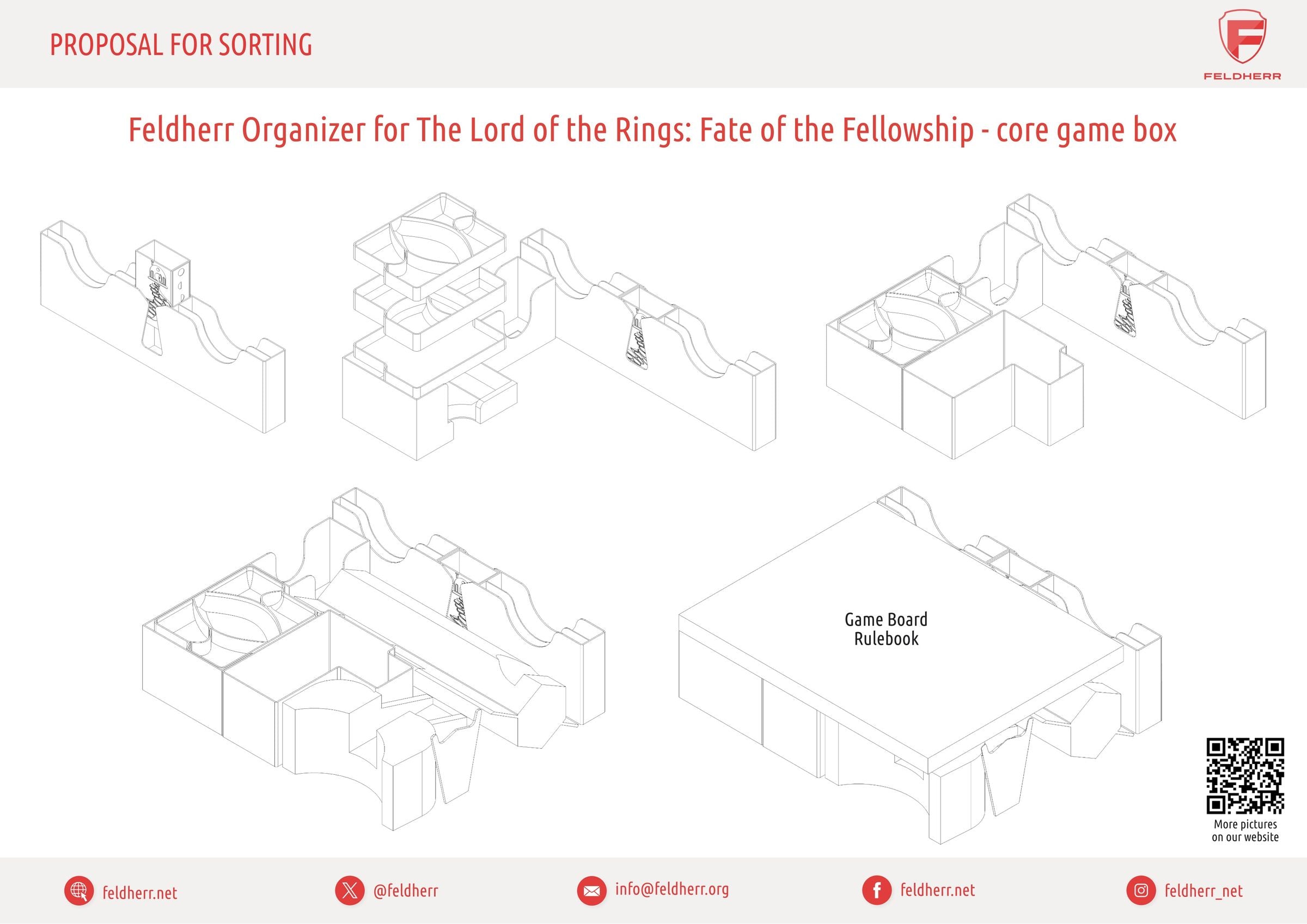 On their journey through Middle-earth, Frodo and his companions face countless dangers. To help you see clearly even without the Eye of Sauron and not get lost in the game materials, this Feldherr Organizer for “The Lord of the Rings: Fate of the Fellowship” brings order to the box and structure to the gaming table - for faster setup, a clear overview, and more fun in every game.