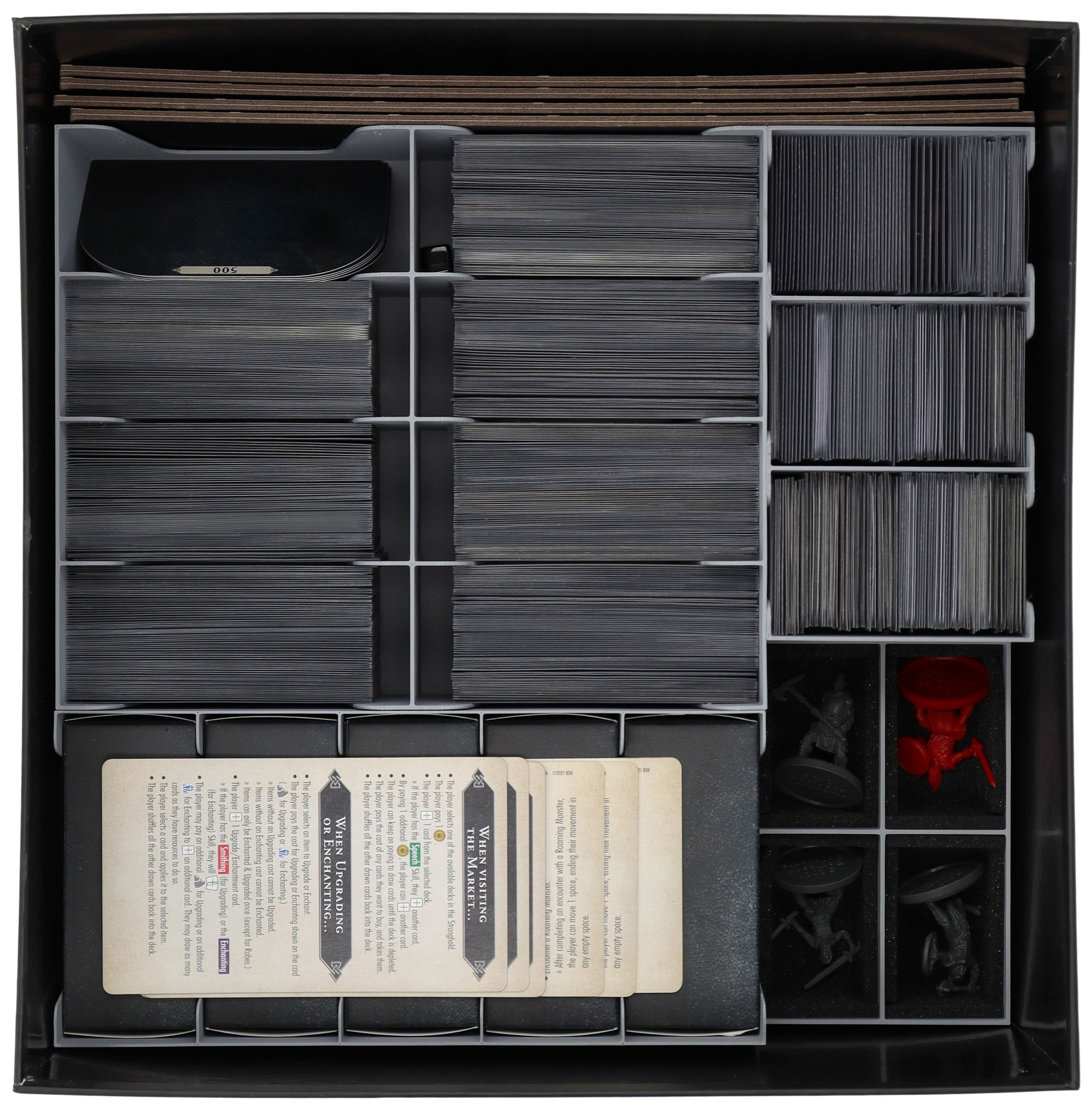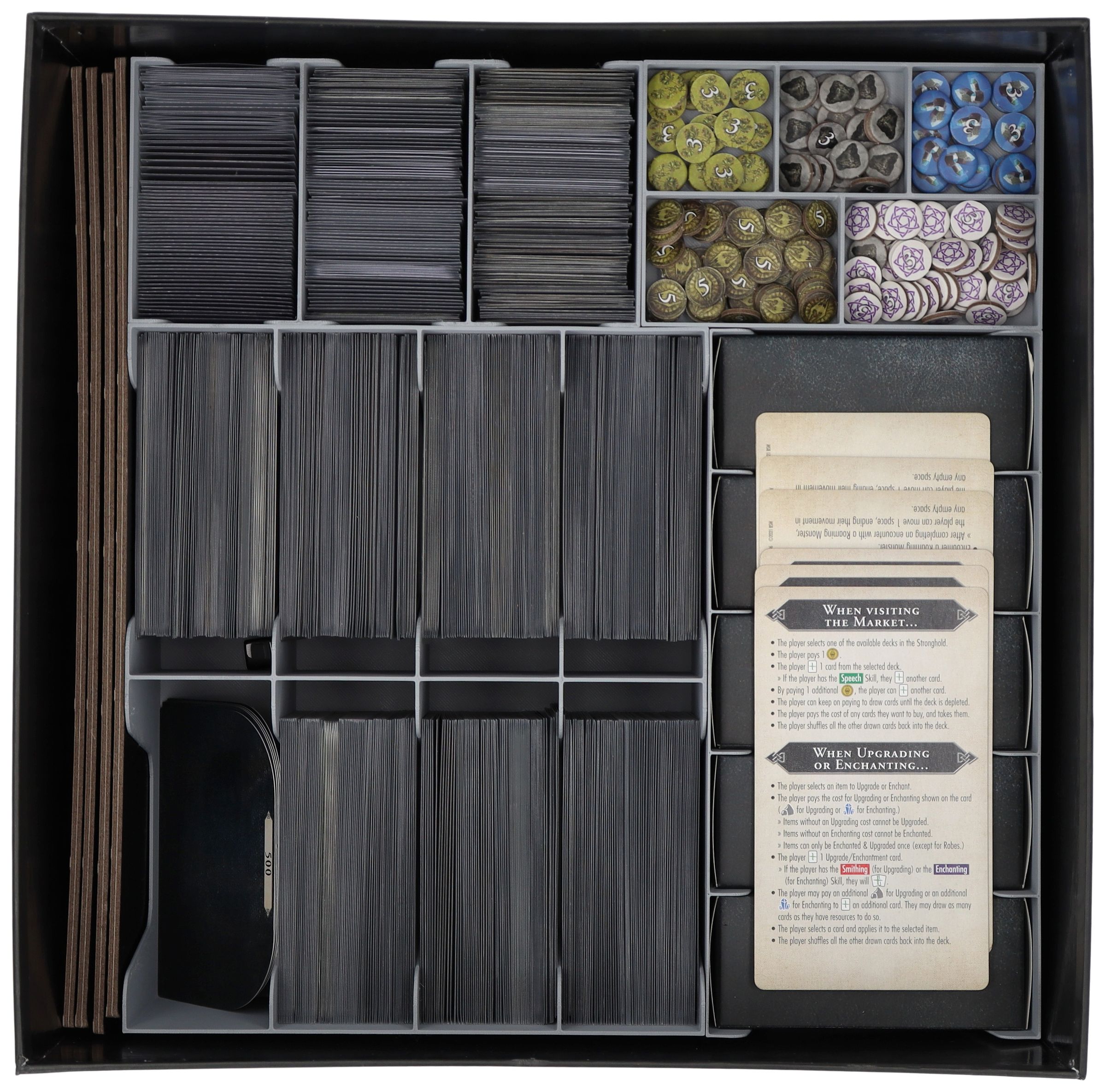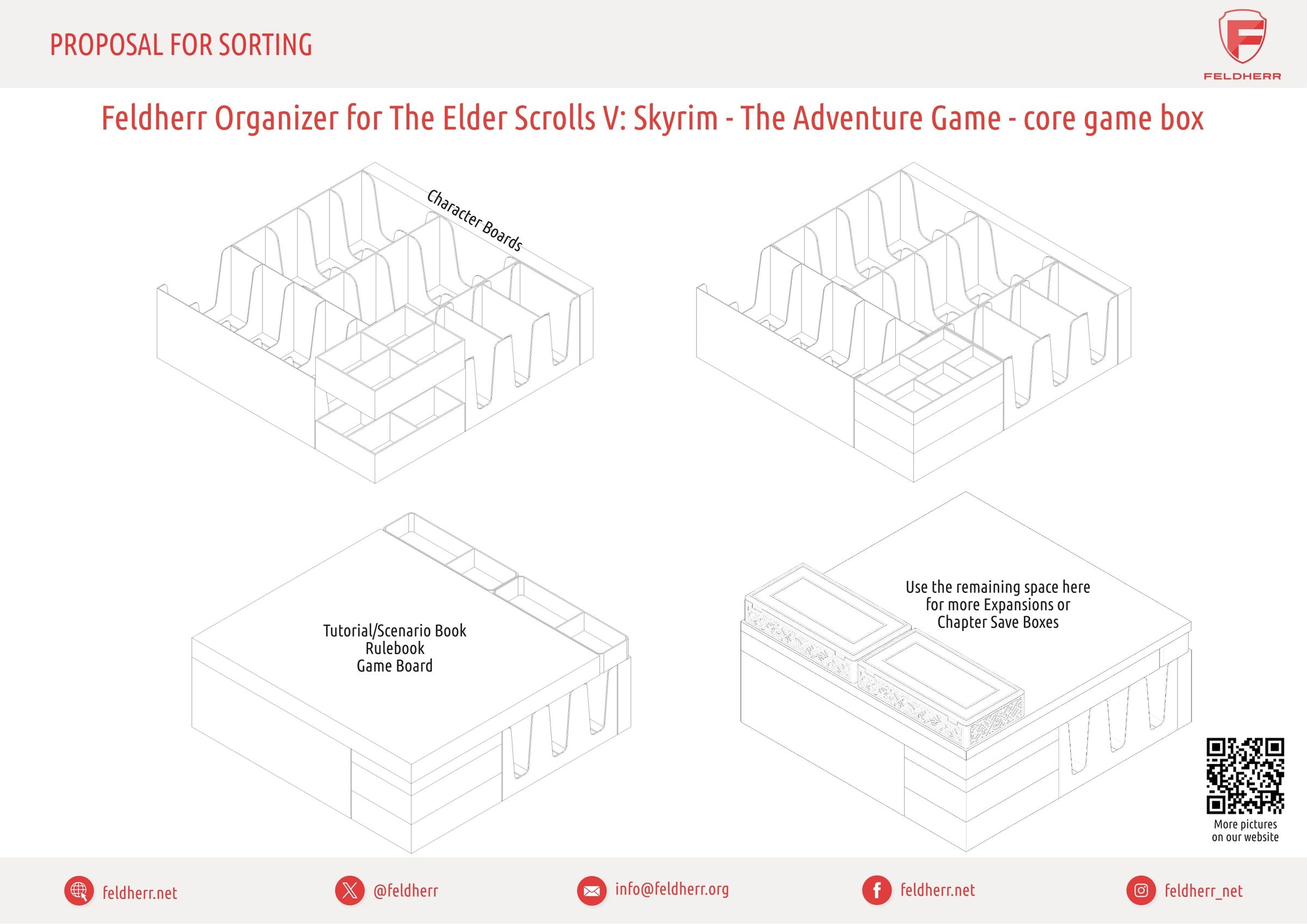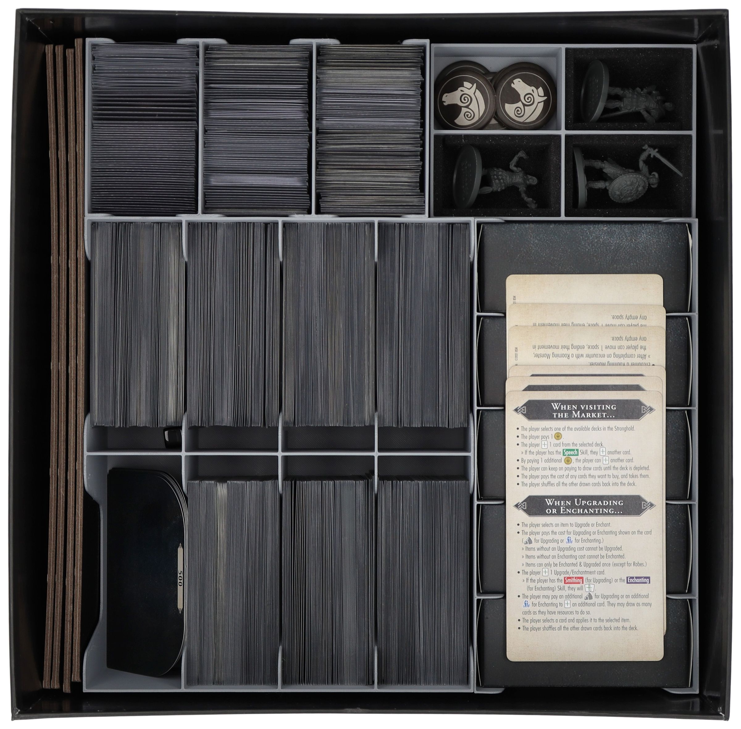 - The Organizer fits exactly into the original board game box of "The Elder Scrolls V: Skyrim - The Adventure Game" core game (organizer dimensions: 288 x 272 x 141 mm).