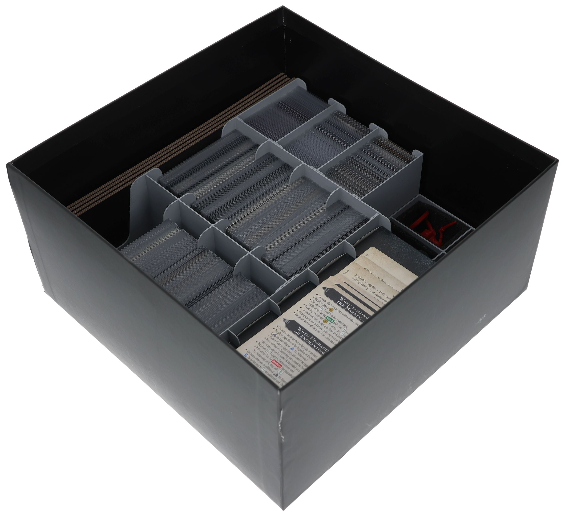 The Organizer provides a better overview and helps you to keep your game box tidy. This also speeds up the build-up of the game considerably. The character save cards can be placed on top of the instructions to create additional space for cards from expansions.