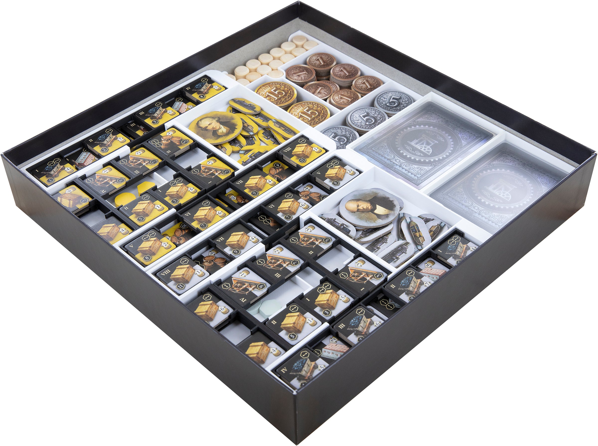 While you focus on expanding your factories, we take care of your board game box. Our inserts ensure space-saving and orderly organization of your game materials in the box and on the tabletop.