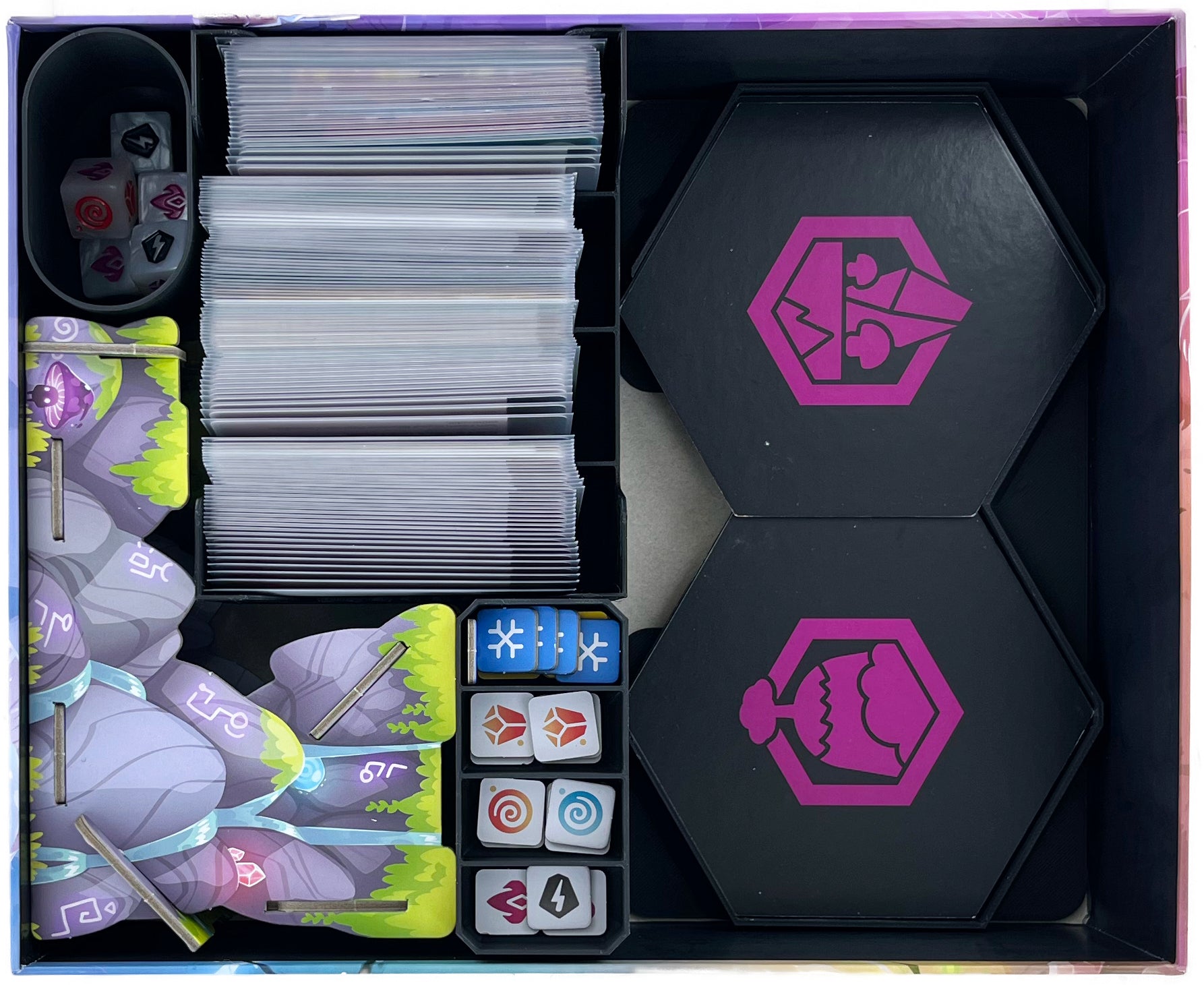 To help you cast the biggest shadow, we've eliminated the clutter in your board game box. 1 card holder and 4 plastic trays ensure the necessary order and offer space to store not only the content of the core game but also the unlocked stretch goals of the "Kickstarter Exclusive Edition + Expansion" pledge and the content of the Ice Storm expansion. Thanks to the clear structure of the Organizer, you always know where your game material is. You can save yourself time-consuming pre-sorting in the future and invest the time gained directly in the game.