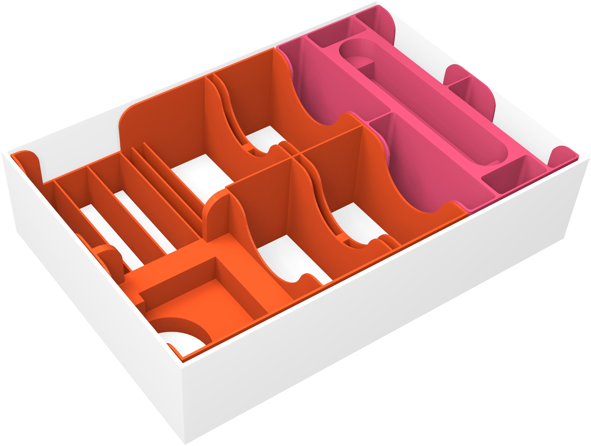 It's quite difficult to make the right choice when digging through all the game material, and you are under time pressure. To simplify the contact with your agents as much as possible, we have commissioned the “Q”'s in our services to develop high-tech sorting and storage technology. The result is this fantastic Feldherr Organizer made of sturdy plastic. Here you can store your game material clearly and compactly in the original board game box. The only thing missing is the rocket engine, or is it?