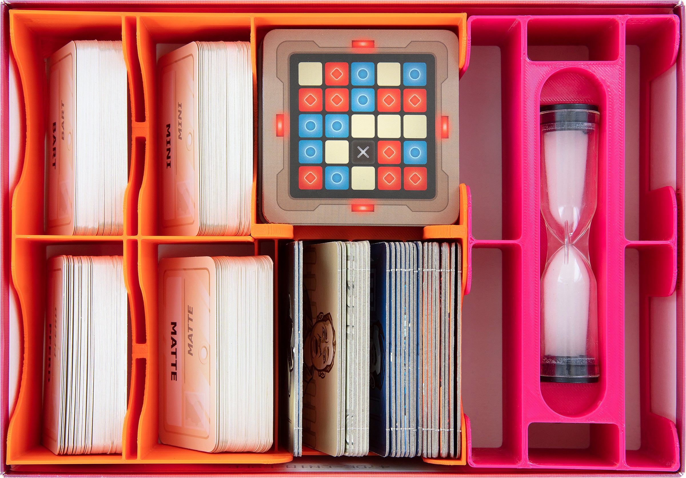 While you train your human knowledge and your memory, we care for the right order and structure in your board game box. The card and hourglass holders help you sort your game material clearly and neatly. Time-consuming pre-sorting is a thing of the past. Thanks to the latest espionage technology and the clear structure of the Organizer, today's agents have quick access to the game material they need. So you have more time to unmask double agents and find the button for the rocket engine.