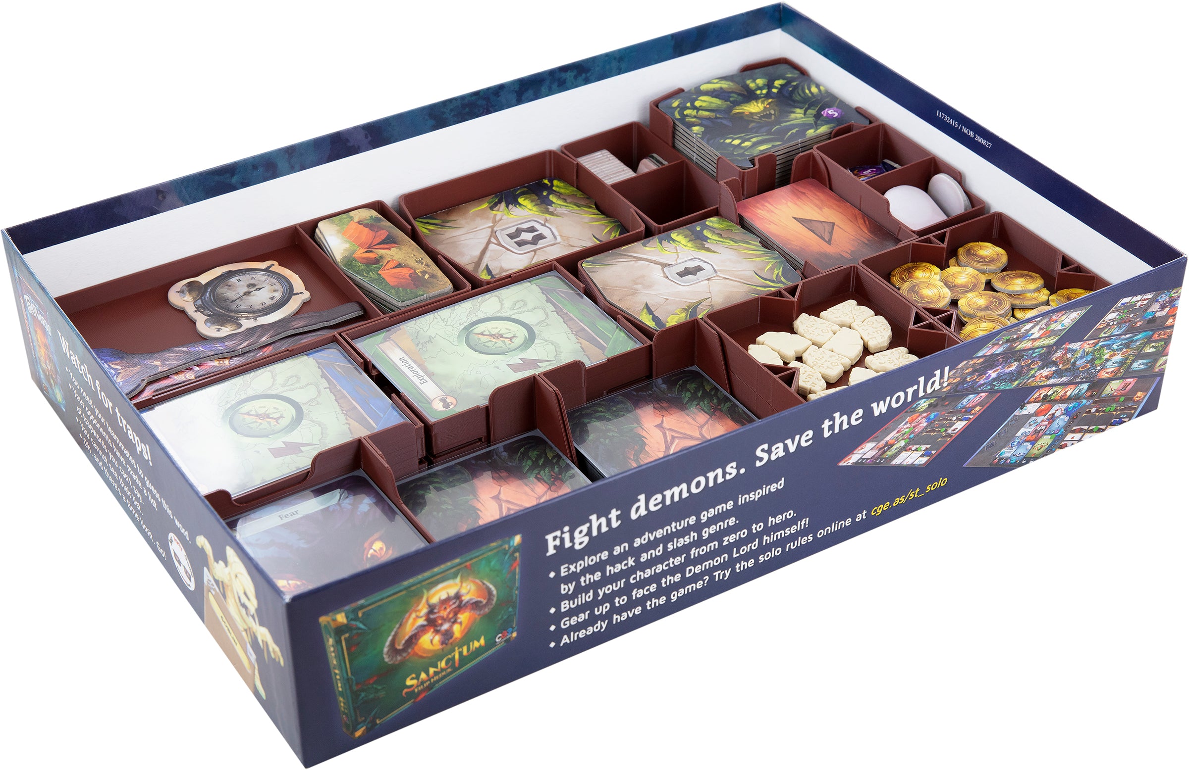 - This Organizer was designed with the core game and the expansion in mind. All components have a tight fit and the box will be transportable and tilt-proof. It can then also be stored vertically. However, you can use the Organizer just for the core game, too, but then horizontal storage of the board game box is recommended. There will also be 2 compartments and a card holder left vacant.