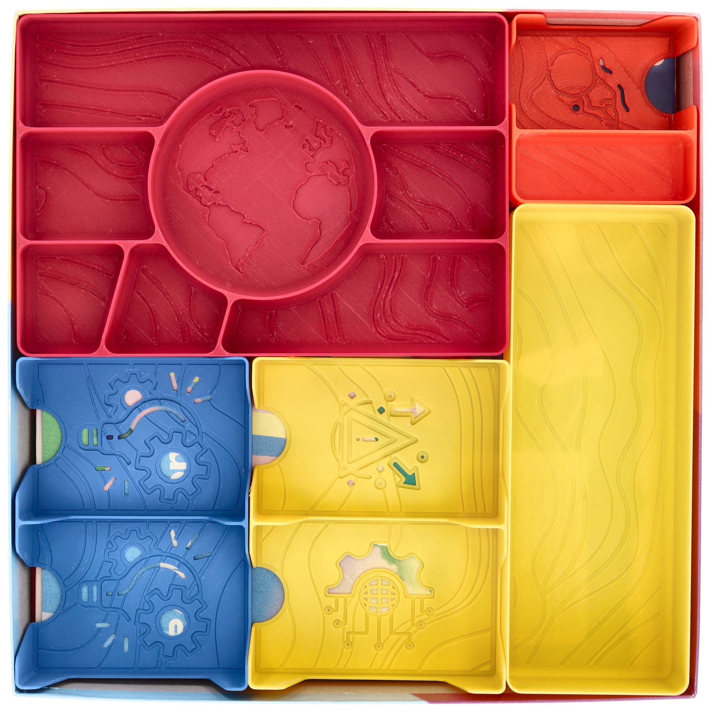 - Custom-designed compartments with symbols matching the components make it easier to sort all the tokens and speed up game setup.