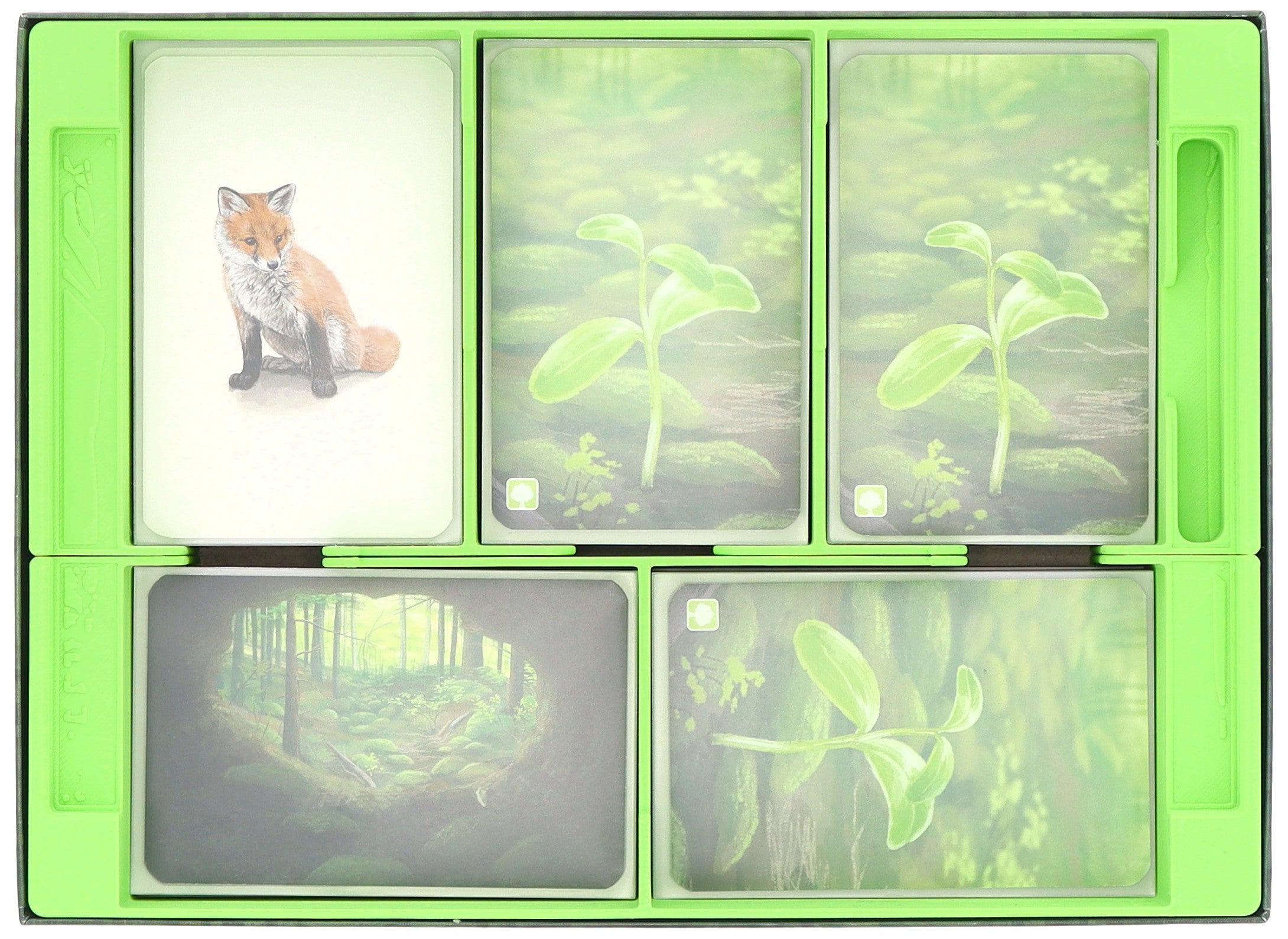 • Compartments for up to 295 sleeved or 590 unsleeved cards offer generous storage space - also for future expansions such as “Woodland Edge”.