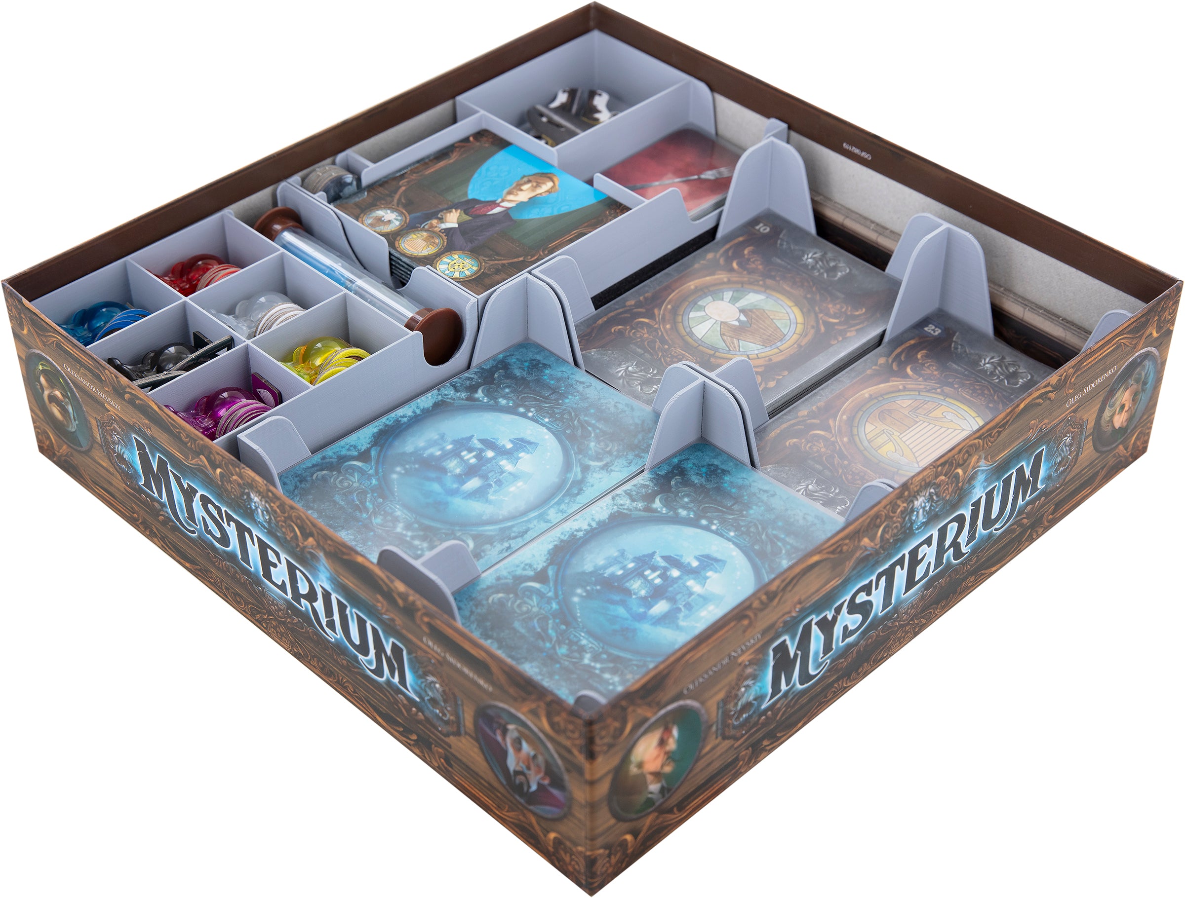 Instead of spending hours sorting your game material, you can quickly set up the game thanks to the Organizer and concentrate on the really important things: Solving the mystery of Warwick.- The Organizer provides space for all game materials from the “Mysterium” core game and the two expansions “Secrets & Lies” and “Hidden Signs“.