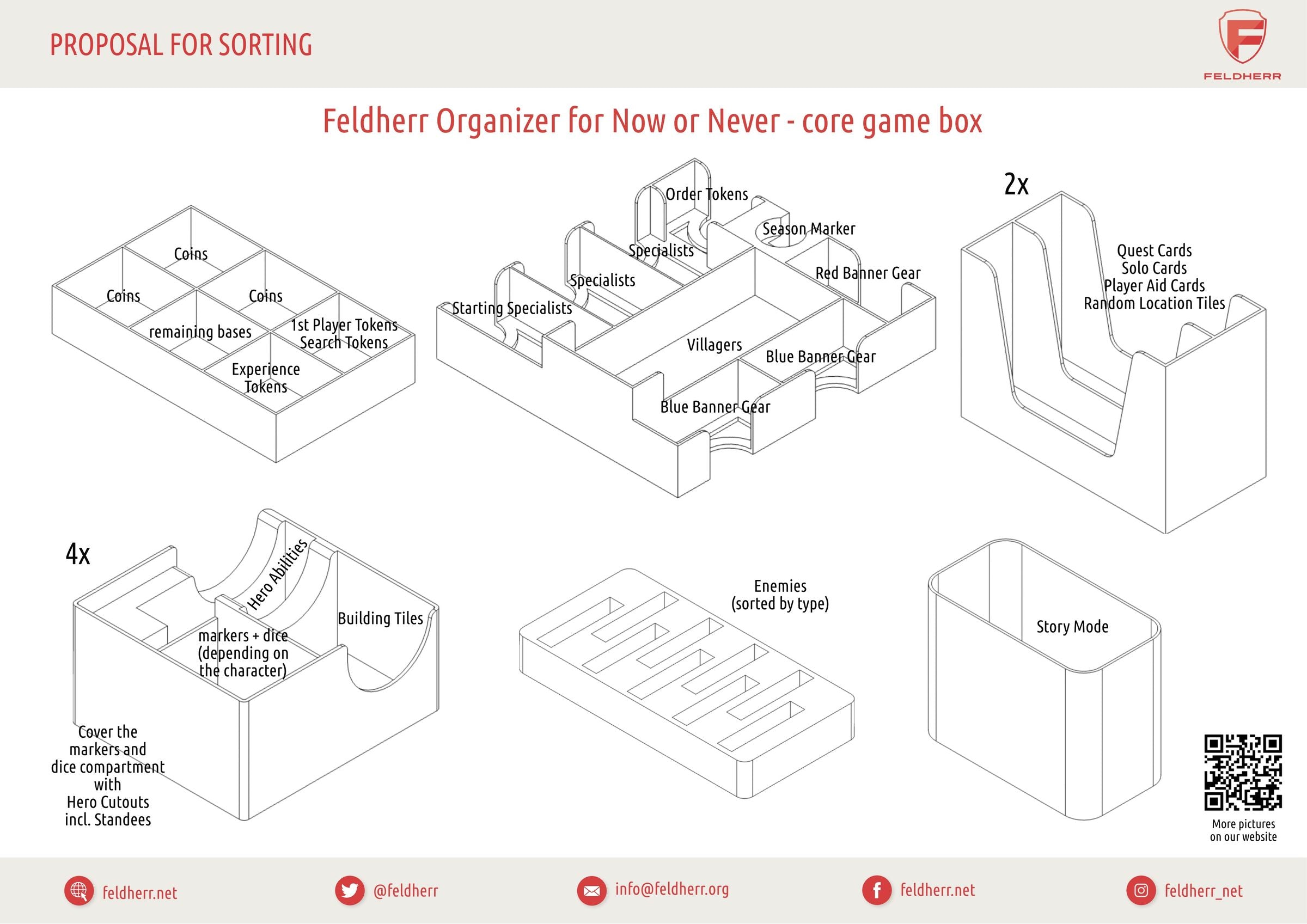 Of course, an undertaking like this needs proper preparation and planning. With this Feldherr Organizer, you avoid standing helpless in front of your former home. It prevents you from rummaging aimlessly through your game material. Each game piece will find a suitable place, and thanks to the clear structure, you will easily find your way around.