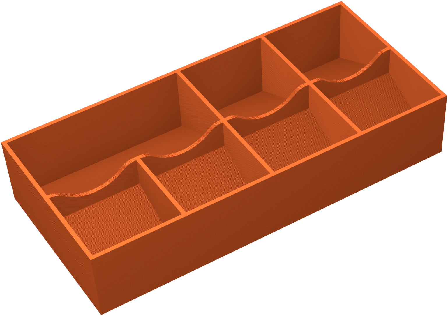 The Organizer for Robinson Cursor consists of 11 trays. The three cardholders remain in the box. The eight tokenholders can be removed from the box and freely arranged on the table.
