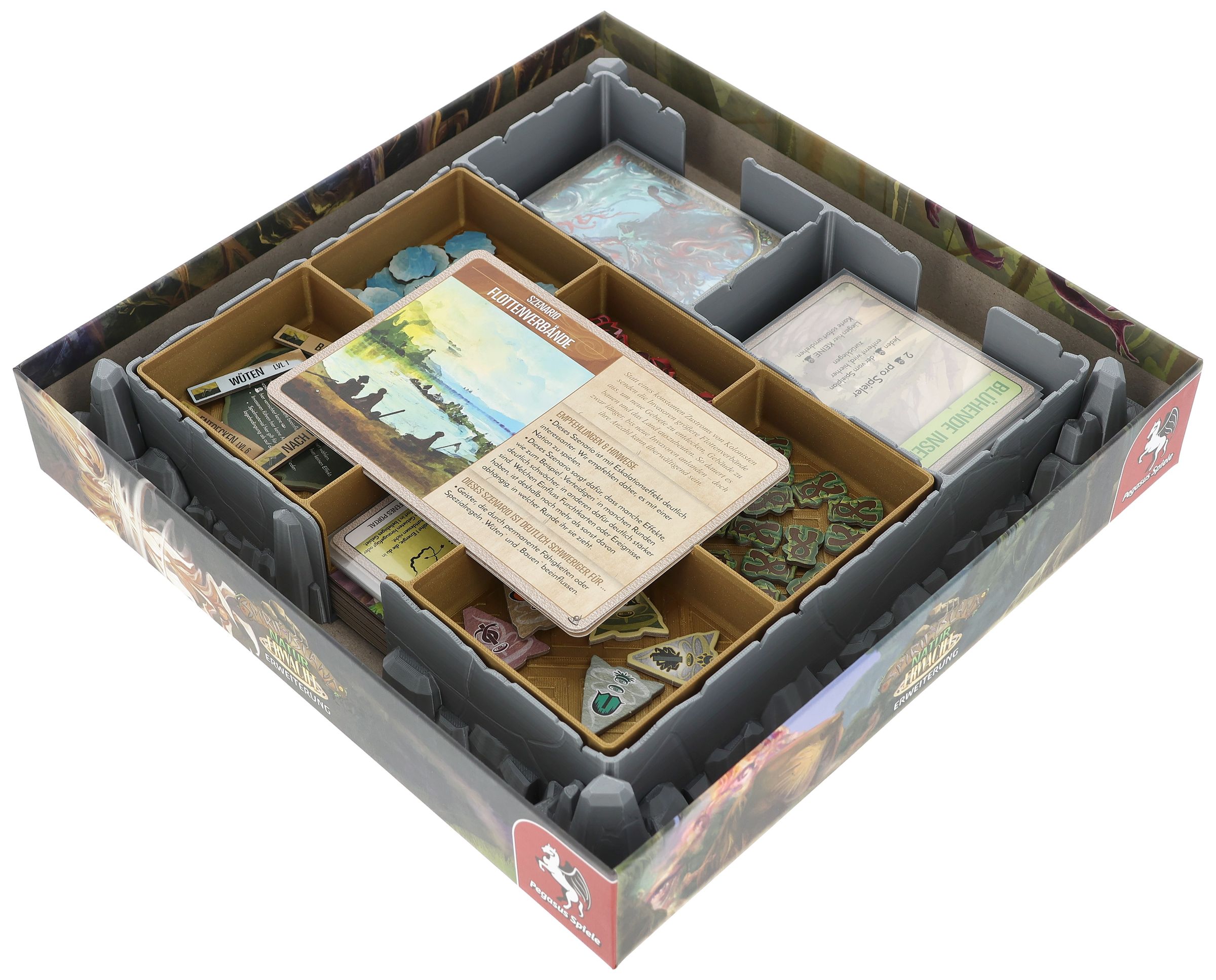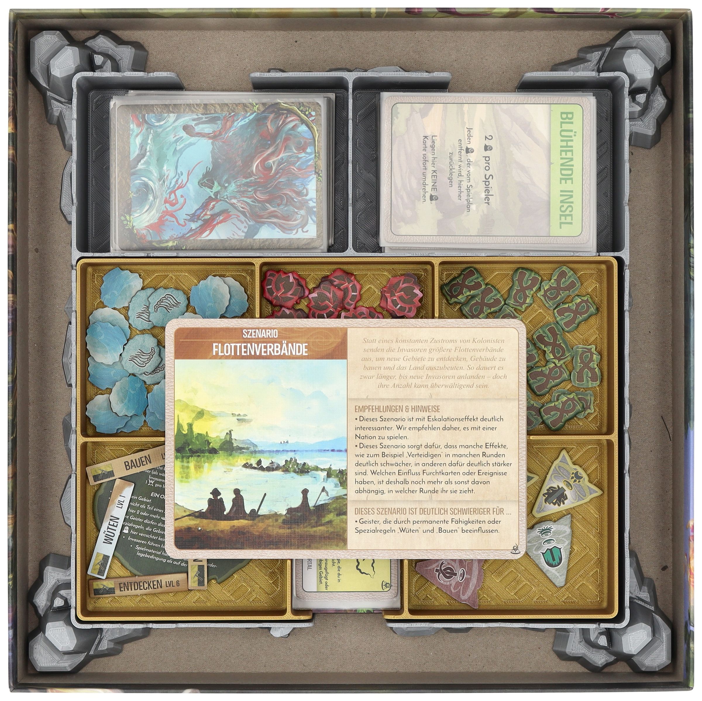- Provides space for all game components of the expansion – from cards and tokens to the new spirits.