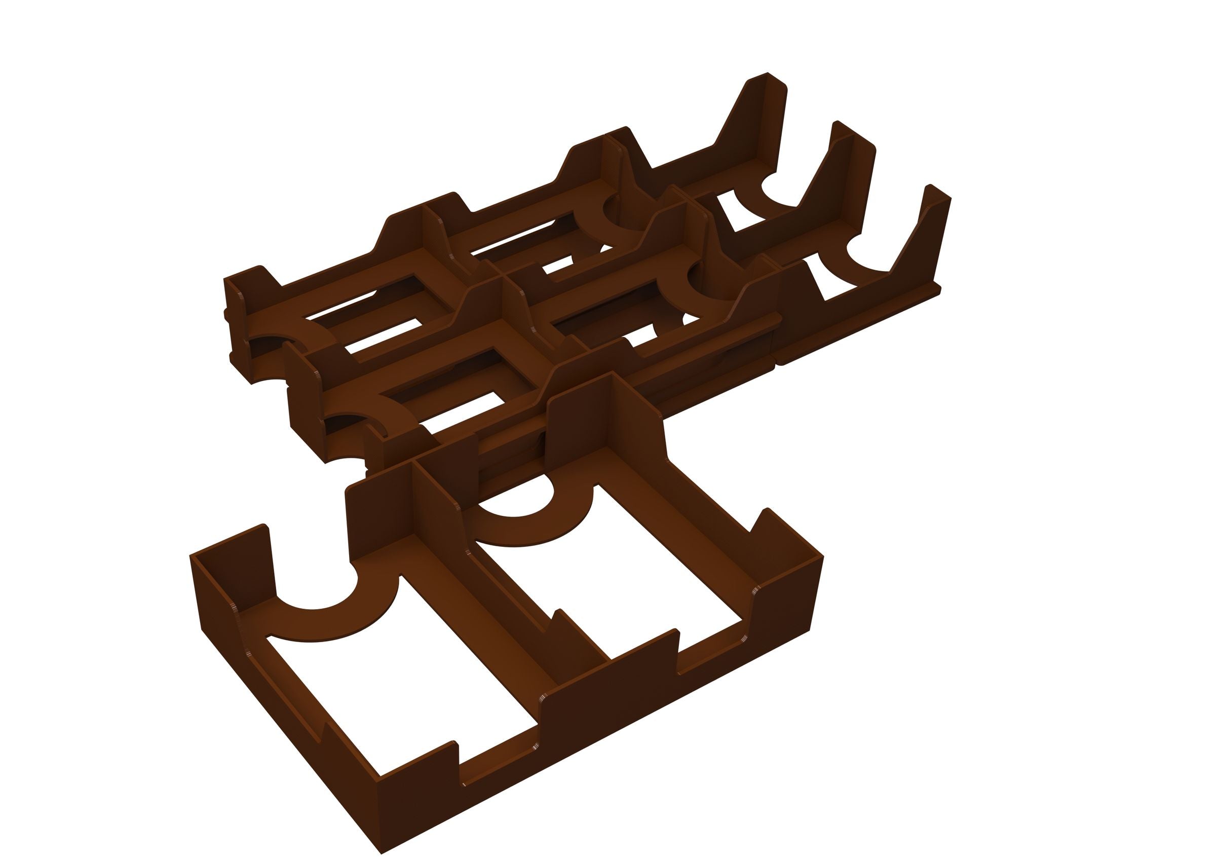 Store the resource tokens in the original supplied plastic tray "the Supply." The second supplied plastic tray, "Organizer," is replaced by the Feldherr plastic inserts and is no longer needed.