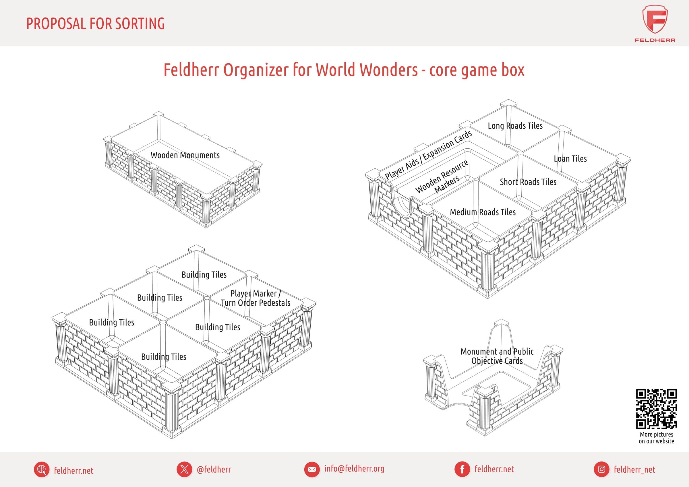 In World Wonders, you become a master builder of magnificent structures that will be spoken of glowingly for a thousand years to come. So that you can concentrate fully on your city and your strategy, this Feldherr Organizer Insert keeps your game box tidy and improves your overall gaming experience.