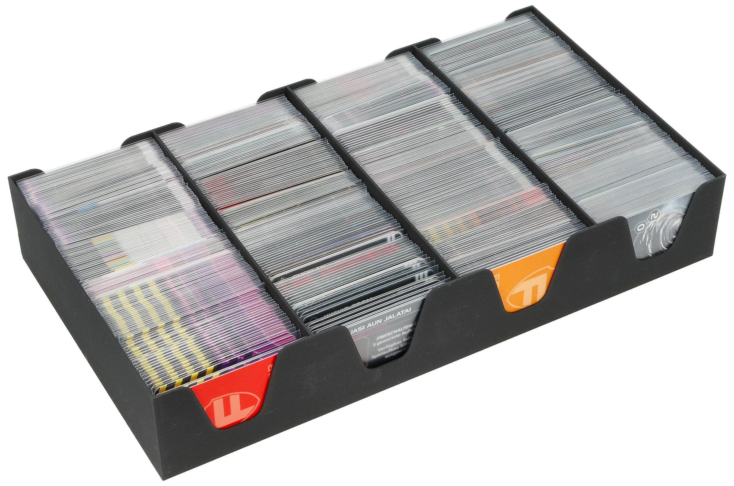 - The cards can be sorted flexibly in the 3D organizer using the enclosed card dividers.