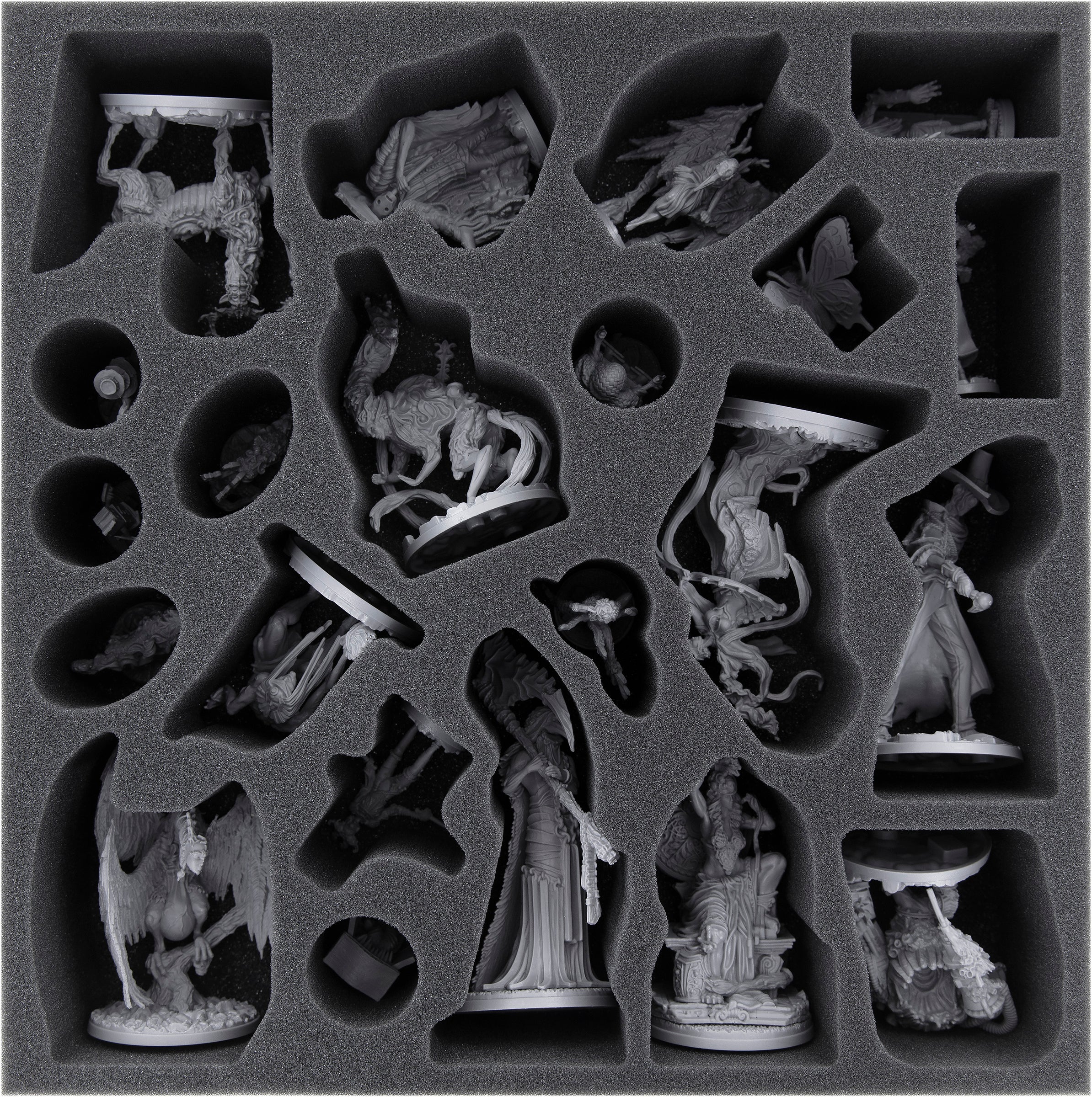- Spread across two custom foam inserts, every single one of your 45 miniatures gets a custom-fit compartment. Belshazar and all miniatures from "Creatures of Etherfields" such as the more than disturbing Scar Crow get a precisely cut compartment.