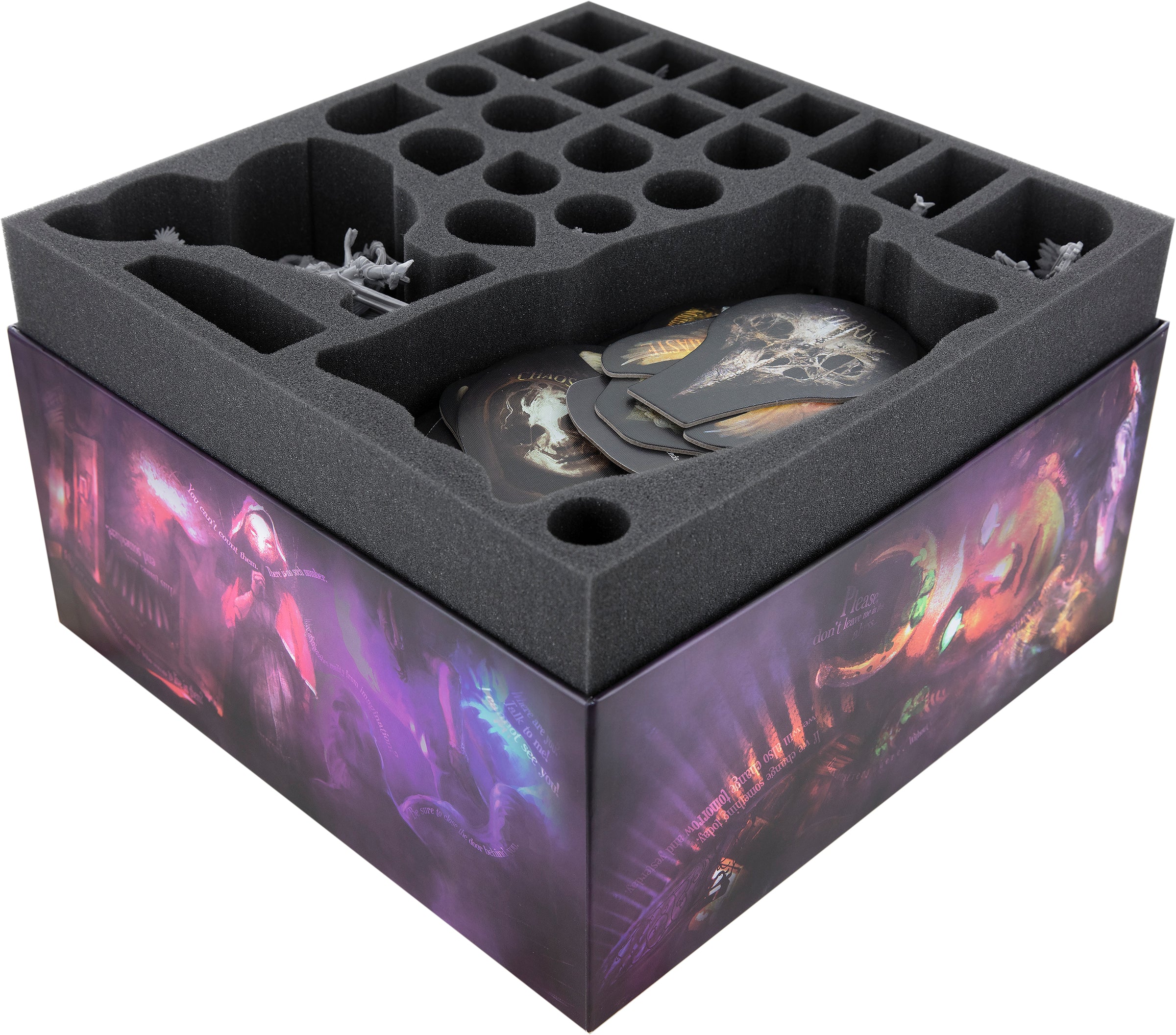 To help you delve deeper into the rabbit hole, we take care of the contents and organization of your boxes. Store your miniatures and bigger sized tokens and boards in the foam trays. The token and card holders allow you to quickly and neatly sort your game material. This way you save time during the game setup and can spend the extra time playing.