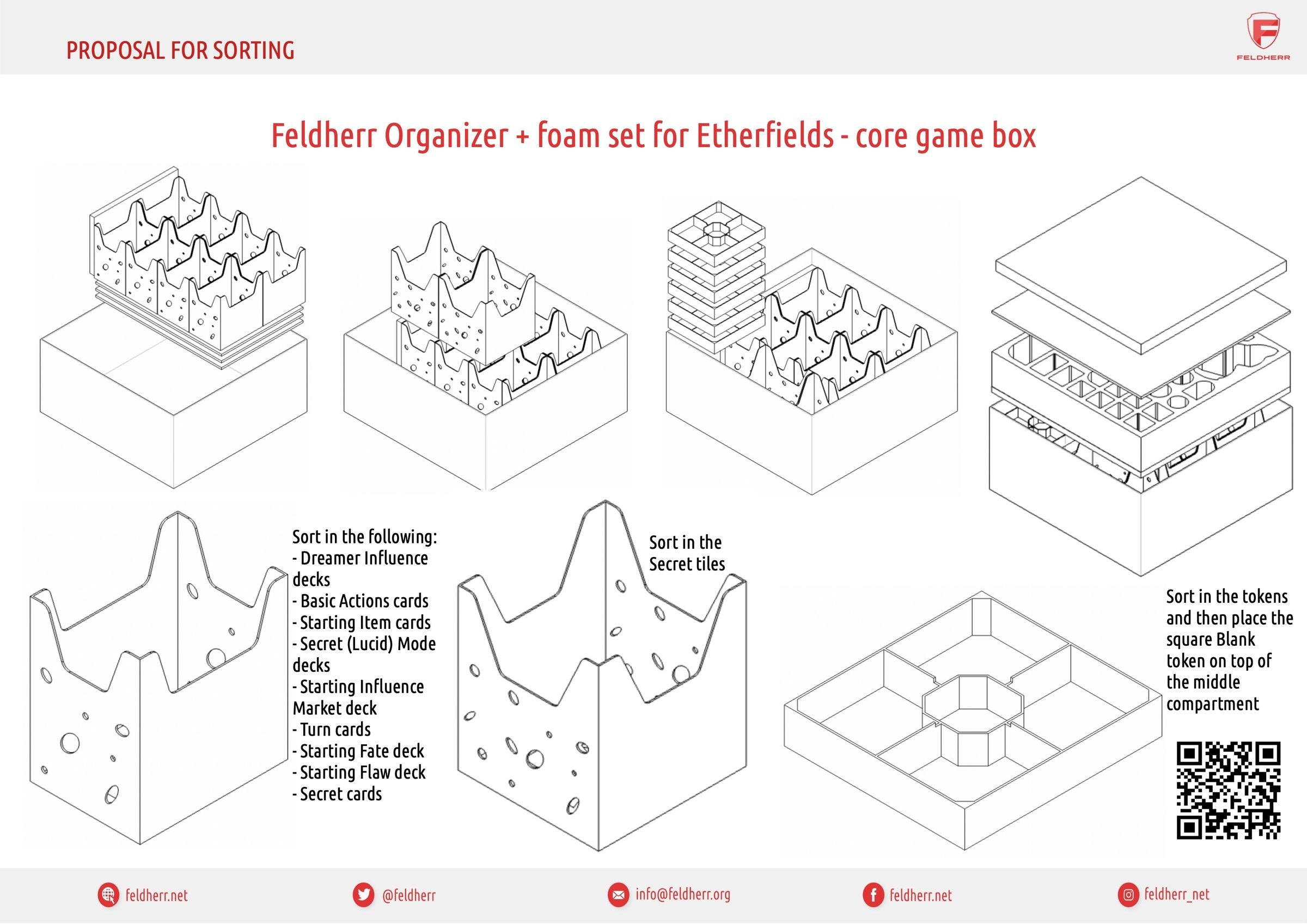 Feldherr Organizer Insert + foam set for Etherfields - core game box + Creatures of Etherfields + Stretch Goals Wave 1 + additional contents