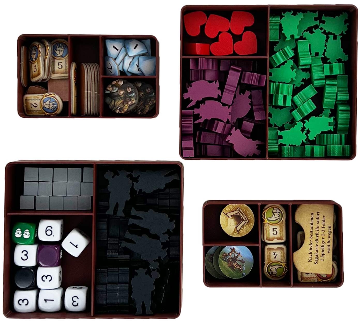 - The Organizer set helps you sort the small-sized game material, such as markers, tiles and wooden figures.
