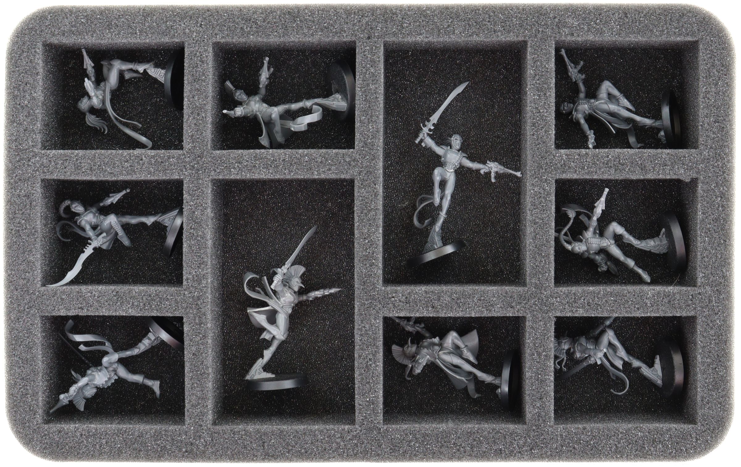 - 1 Half-Size foam tray with 10 compartments for bulky miniatures such as Shadowseer, Death Jester, Solitaire, Harlequin Troupe and models with similar dimensions (HS045A029)