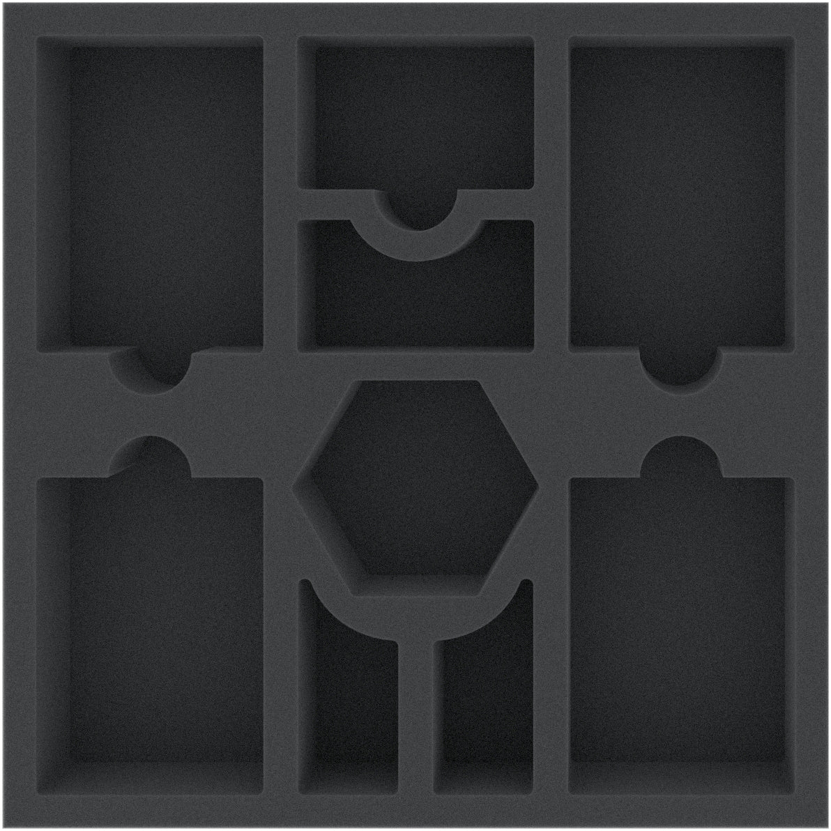 When everything is sorted in, place the supplied foam topper on the insert so that the game materials remain in their compartments during transport.