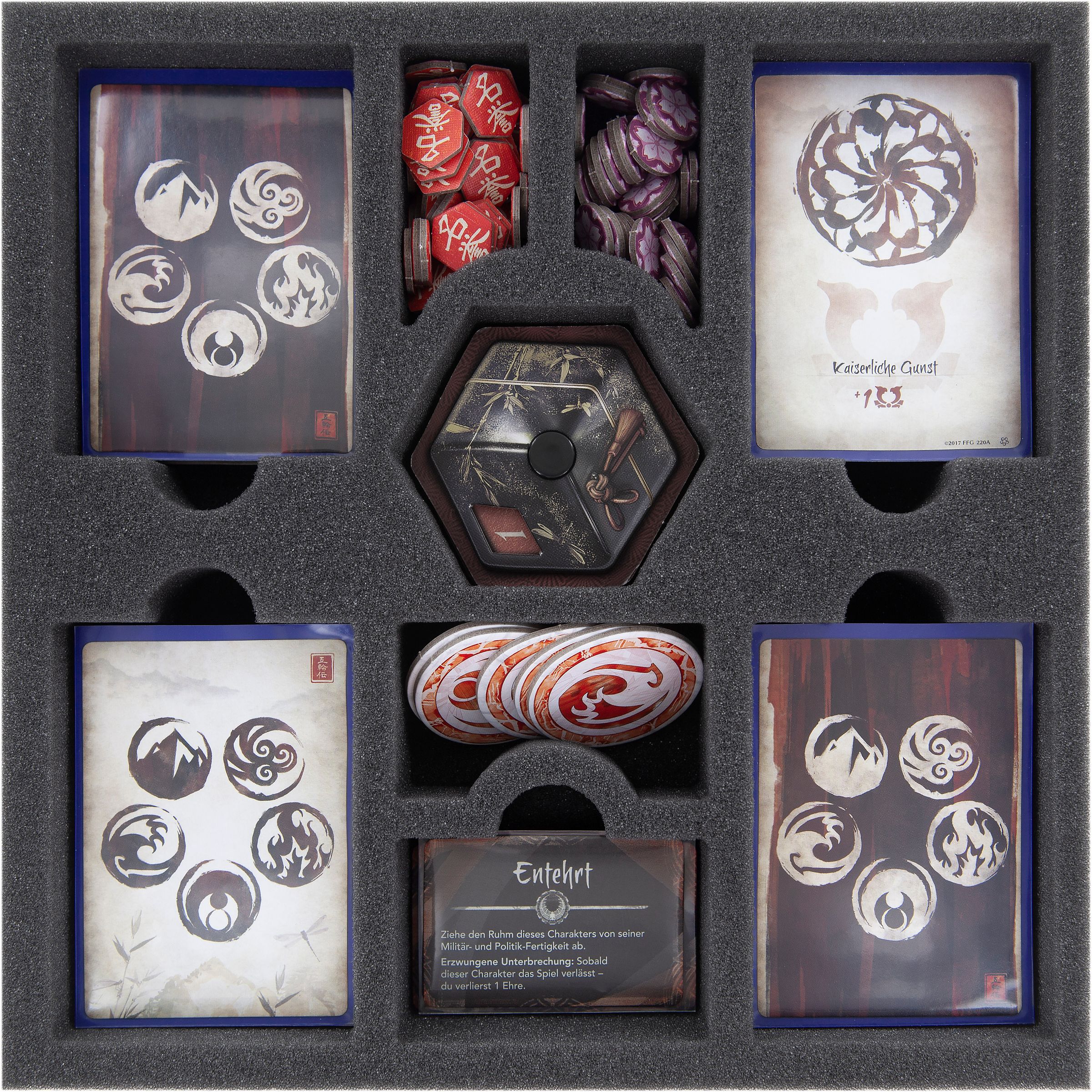 With our foam set for "Legend of the Five Rings LCG", your cards and tokens are neatly and securely stored in the core game box.