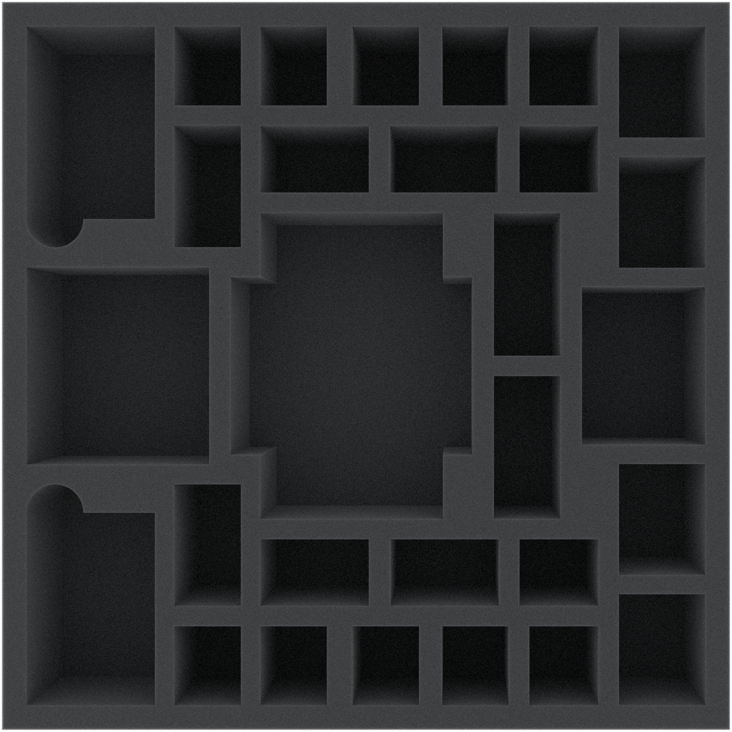 - Provides space for all 12 miniatures and the accessories from the expansion. All cards also fit with sleeves. Dashboards, campaign sheets, and rulebook can be placed on the foam topper.