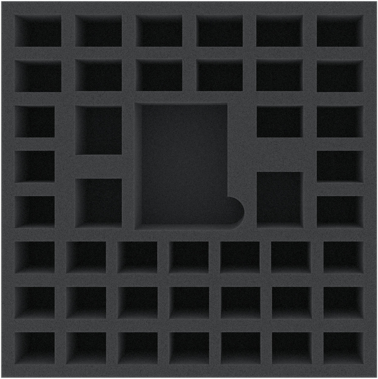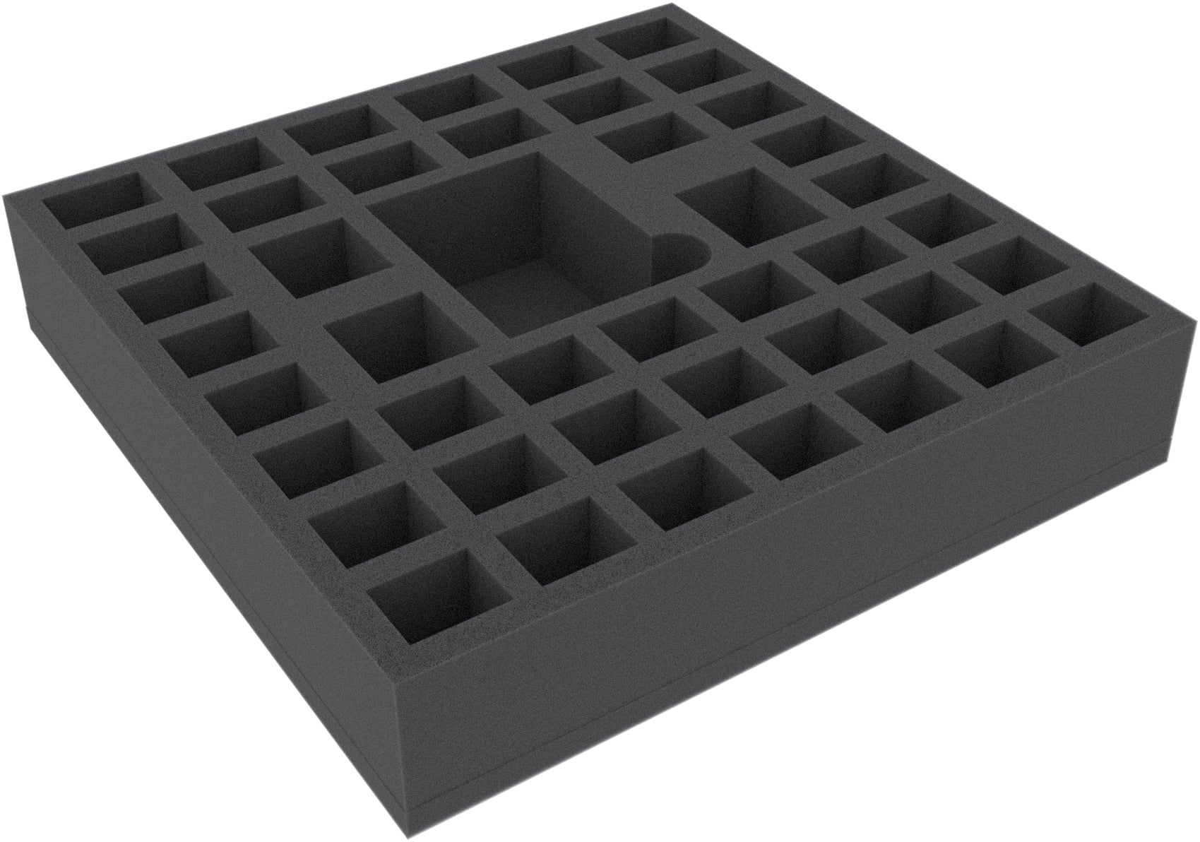 • 1 foam tray with 44 compartments for miniatures, dice, tokens, and normal-sized game cards (AWMEEB055BO)