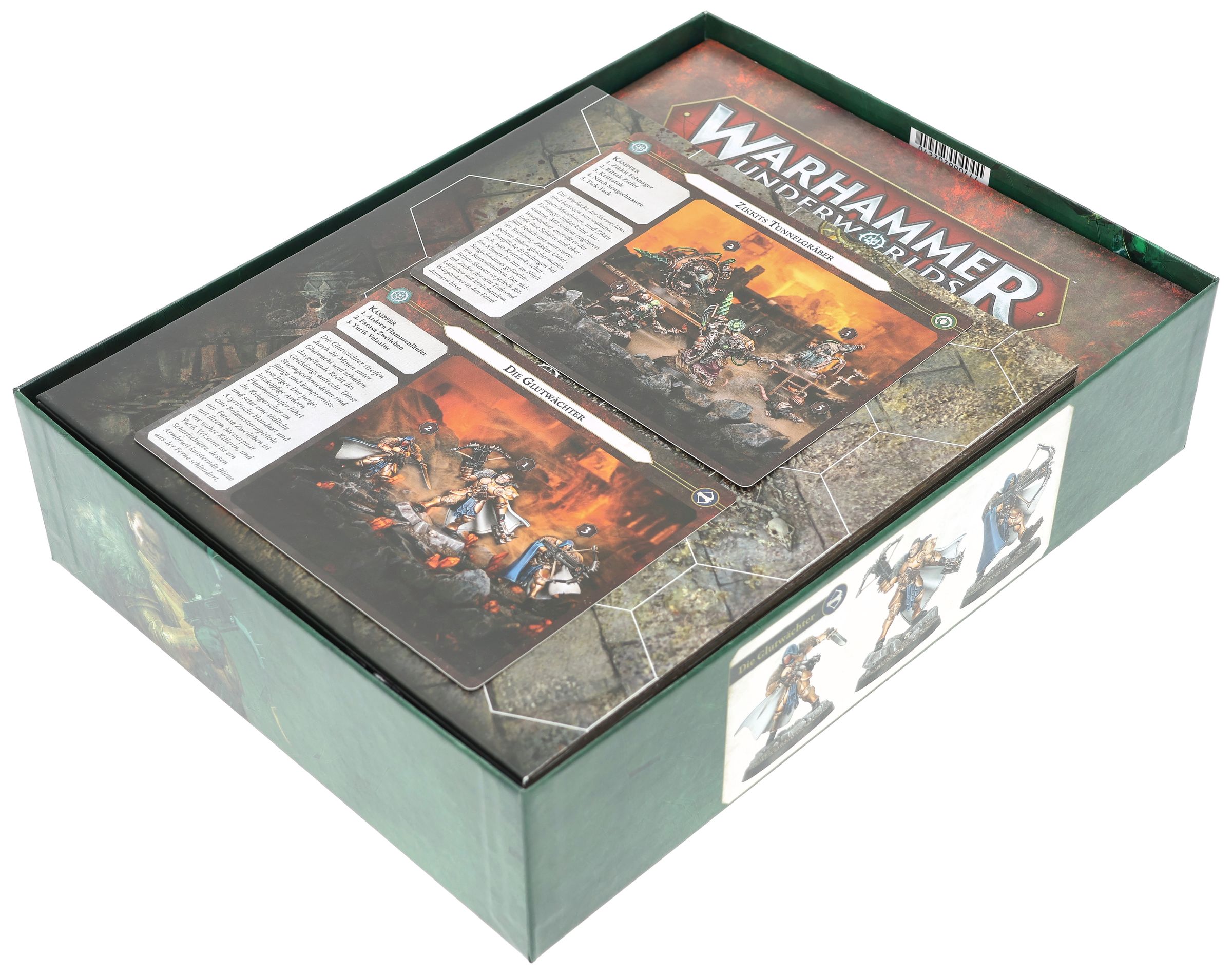 - Custom-fit insert for the original core game box of “Warhammer Underworlds: Embergard” (overall dimensions of the set: approx. 292 x 219 x 60 mm).