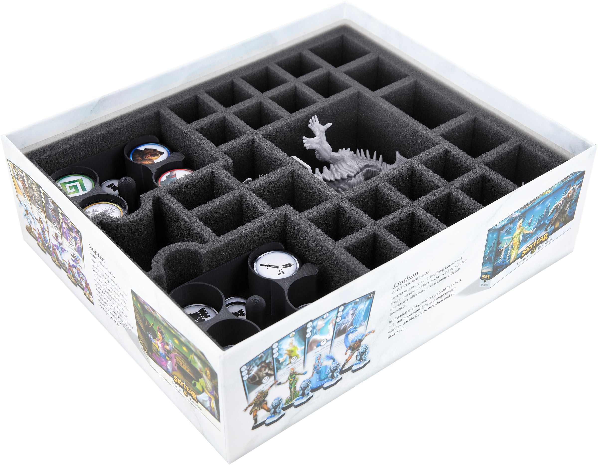 The included foam topper finalizes the set. This prevents miniatures from bumping against the lid of the board game box during transport.