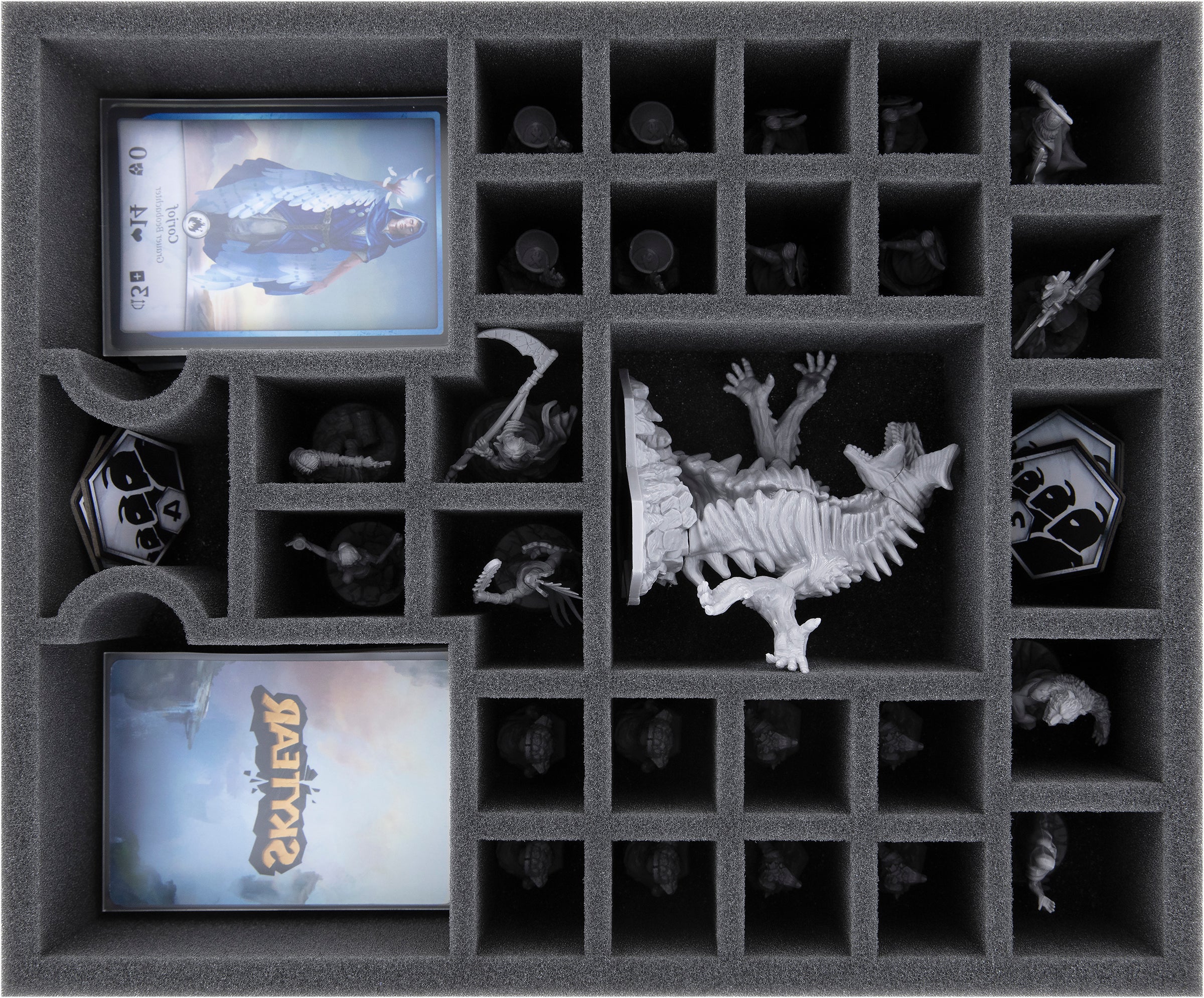 - 1 foam tray with 29 compartments for Skytear miniatures, cards, and game material