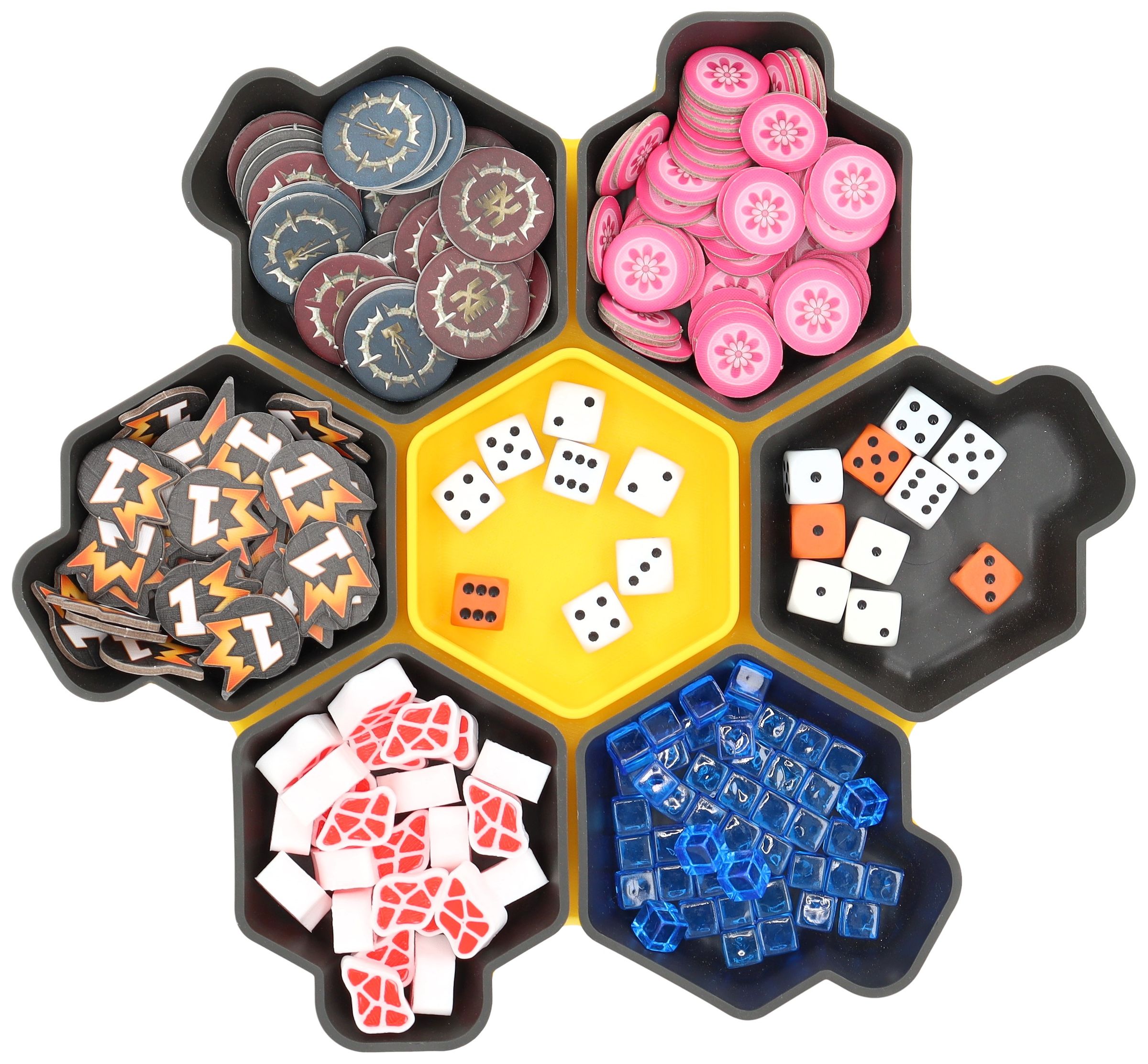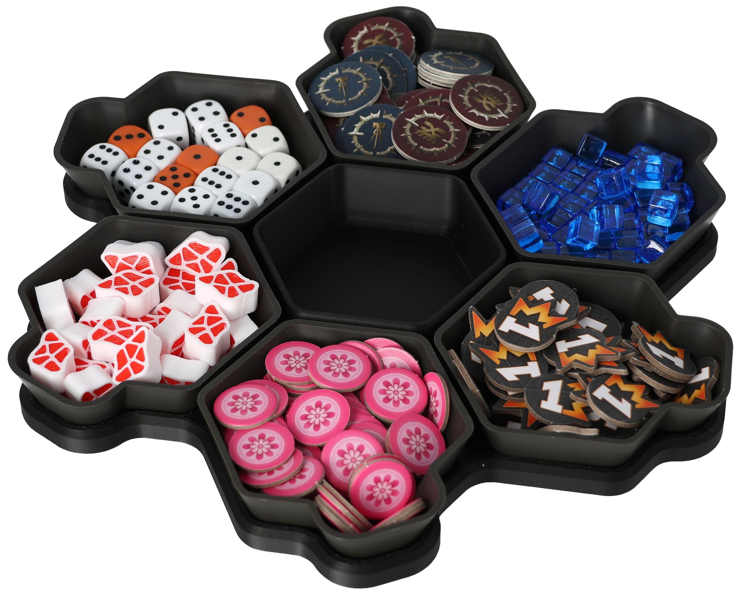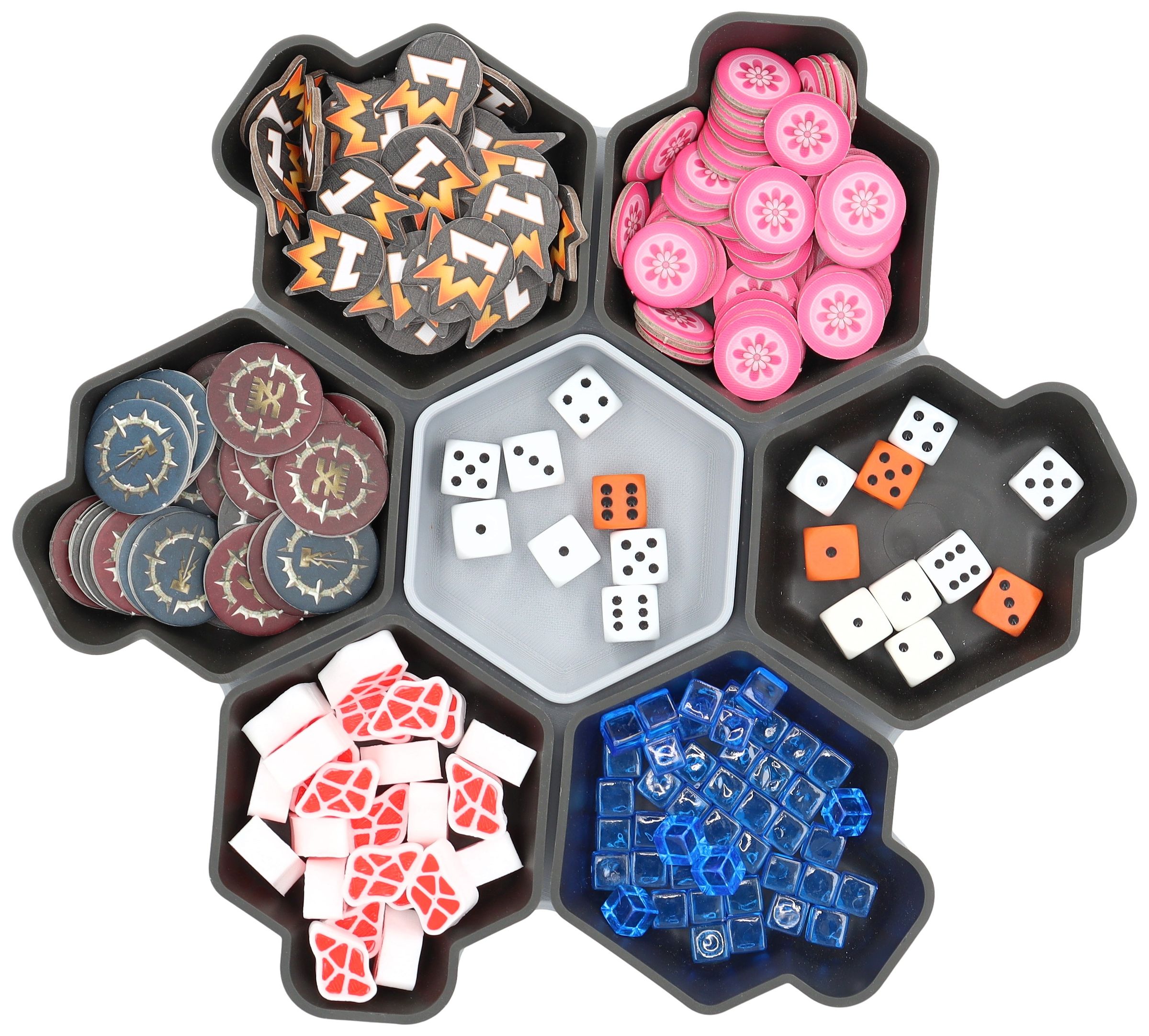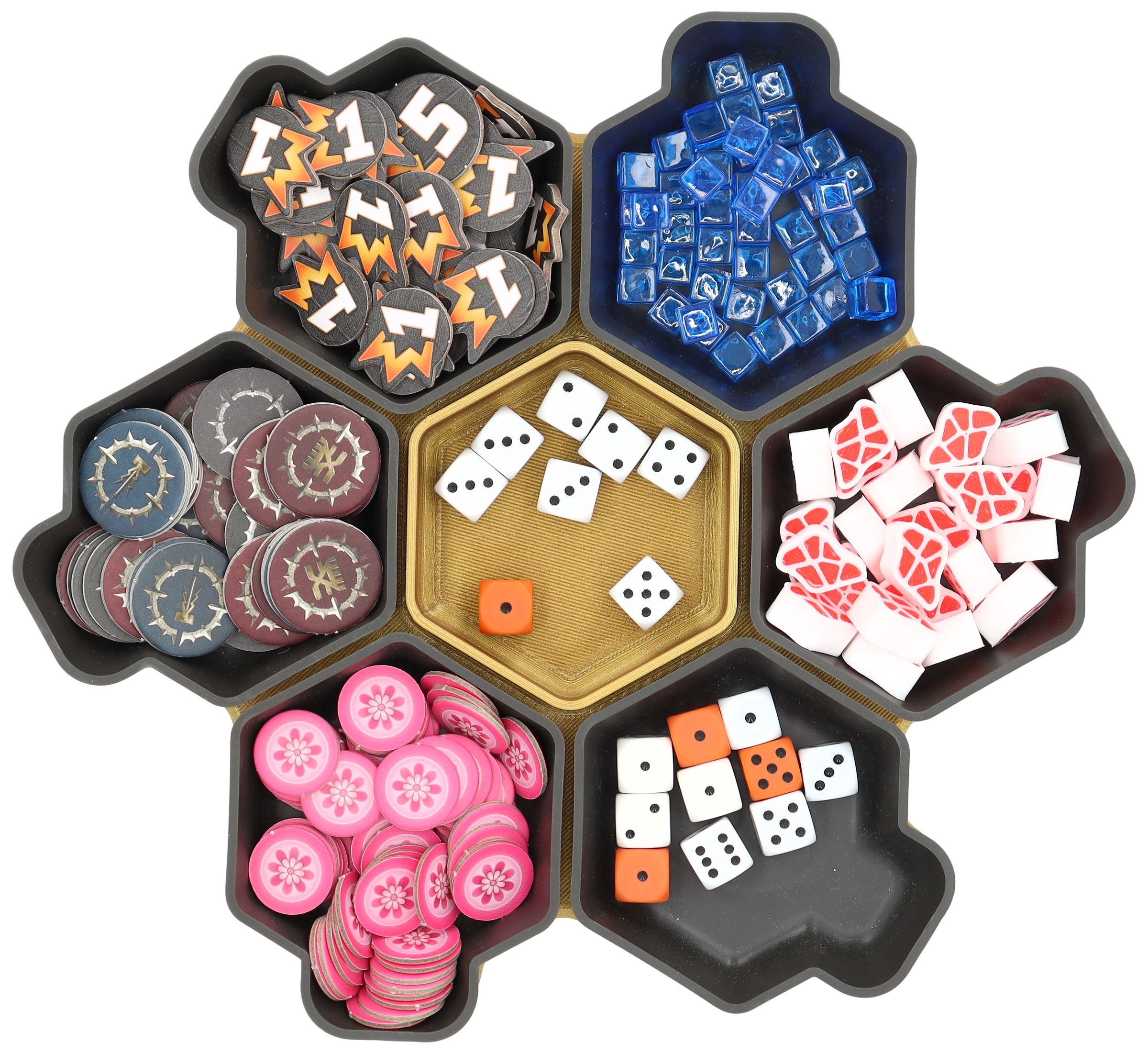 You need more space for your tokens, dice and tiles? Other colors would be nice too? No problem, the SHELL is also available as a 6-pack in six different colors and in the order-loving SHELL Core Box.