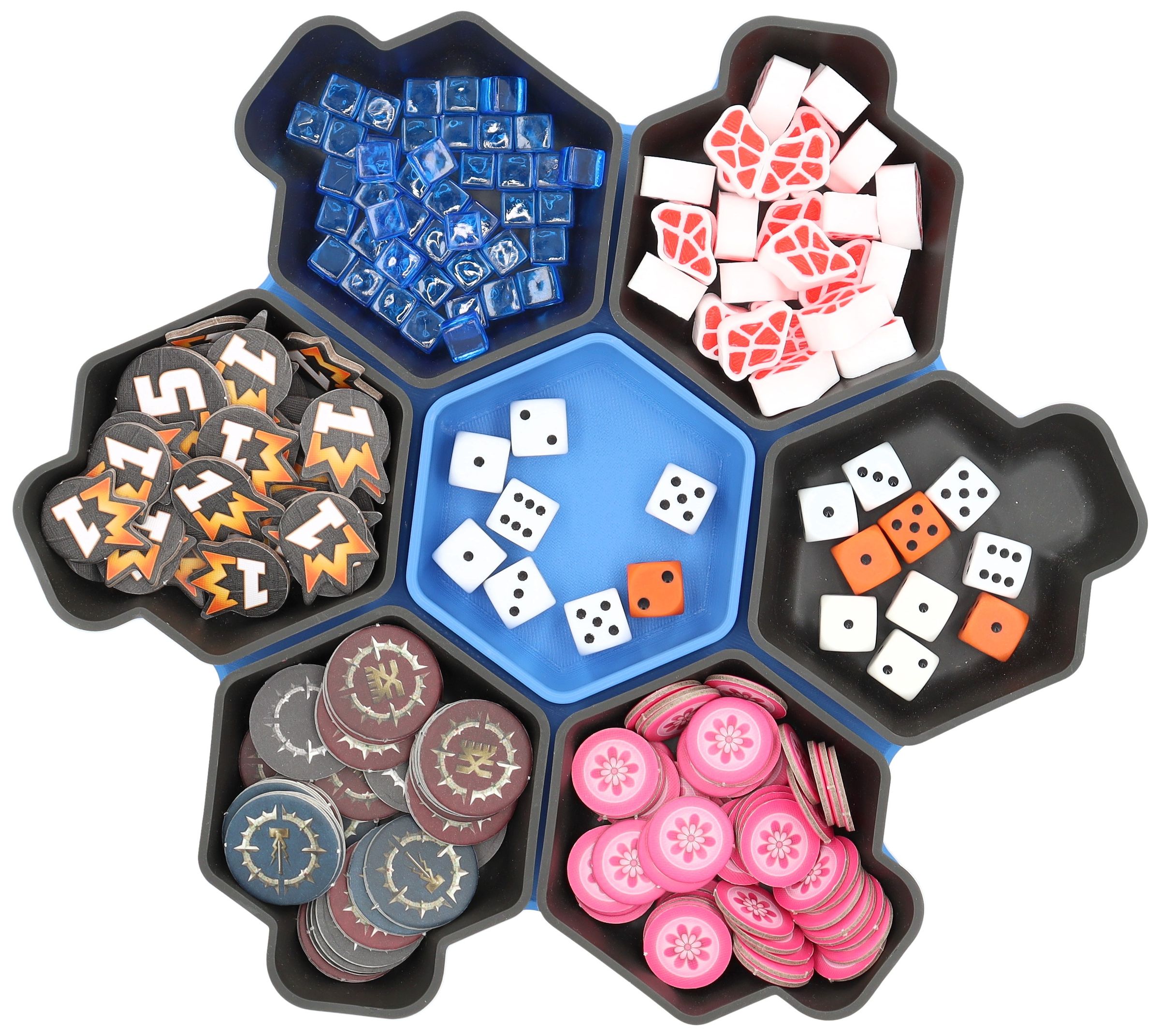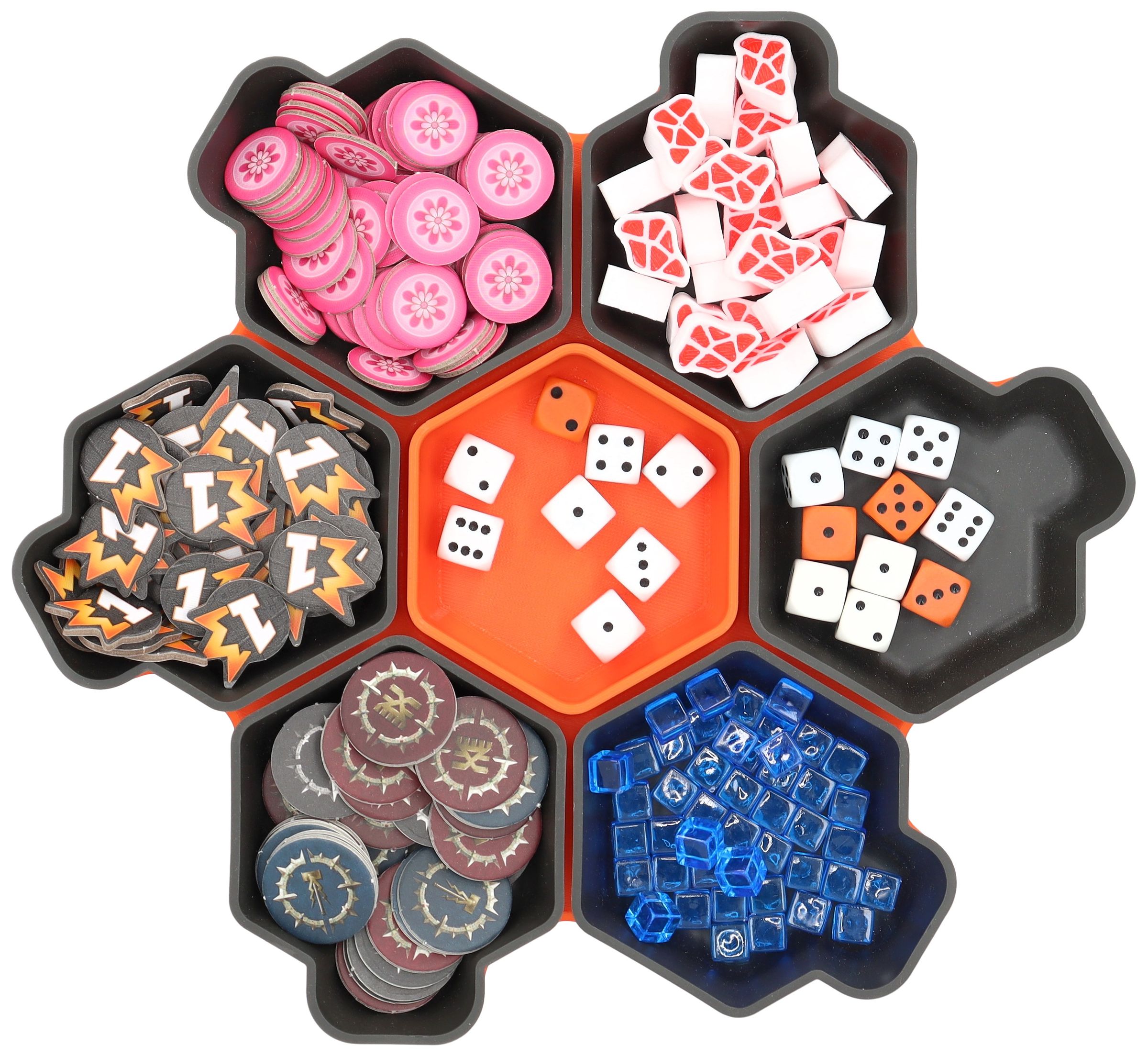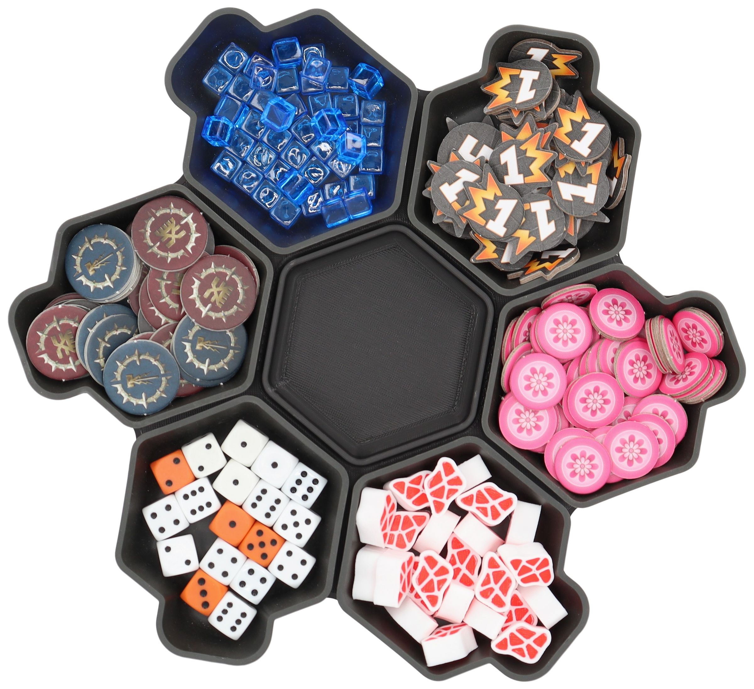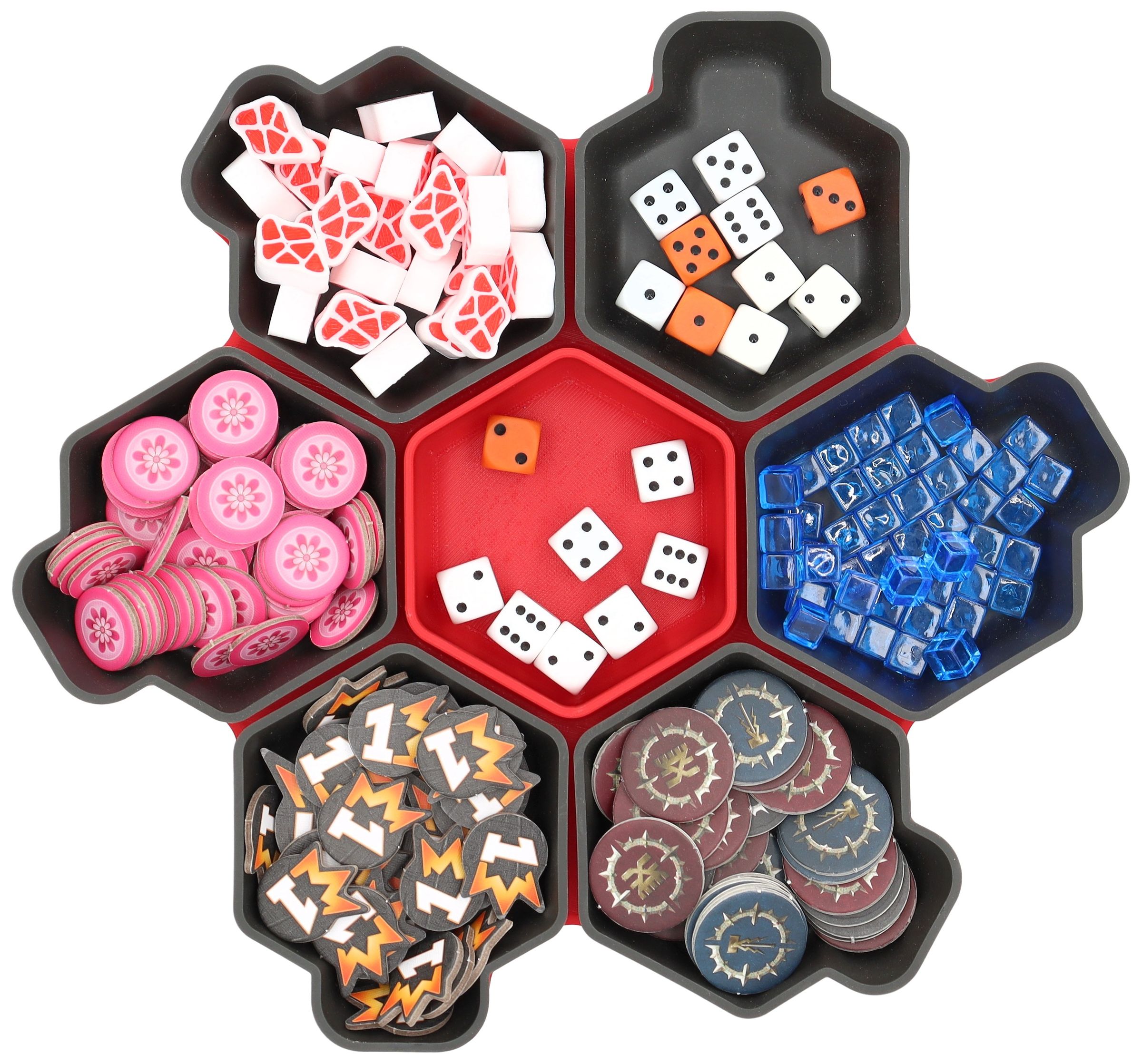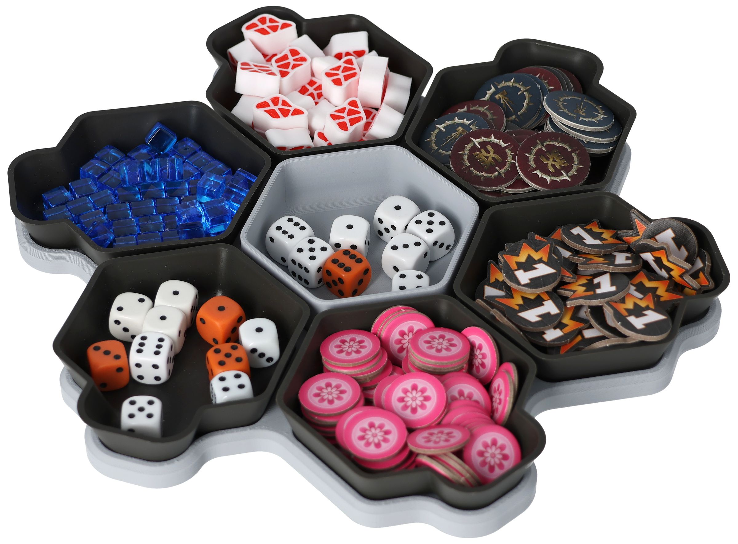 You need more space for your tokens, dice and tiles? Other colors would be nice too? No problem, the SHELL is also available as a 6-pack in six different colors and in the order-loving SHELL Core Box.