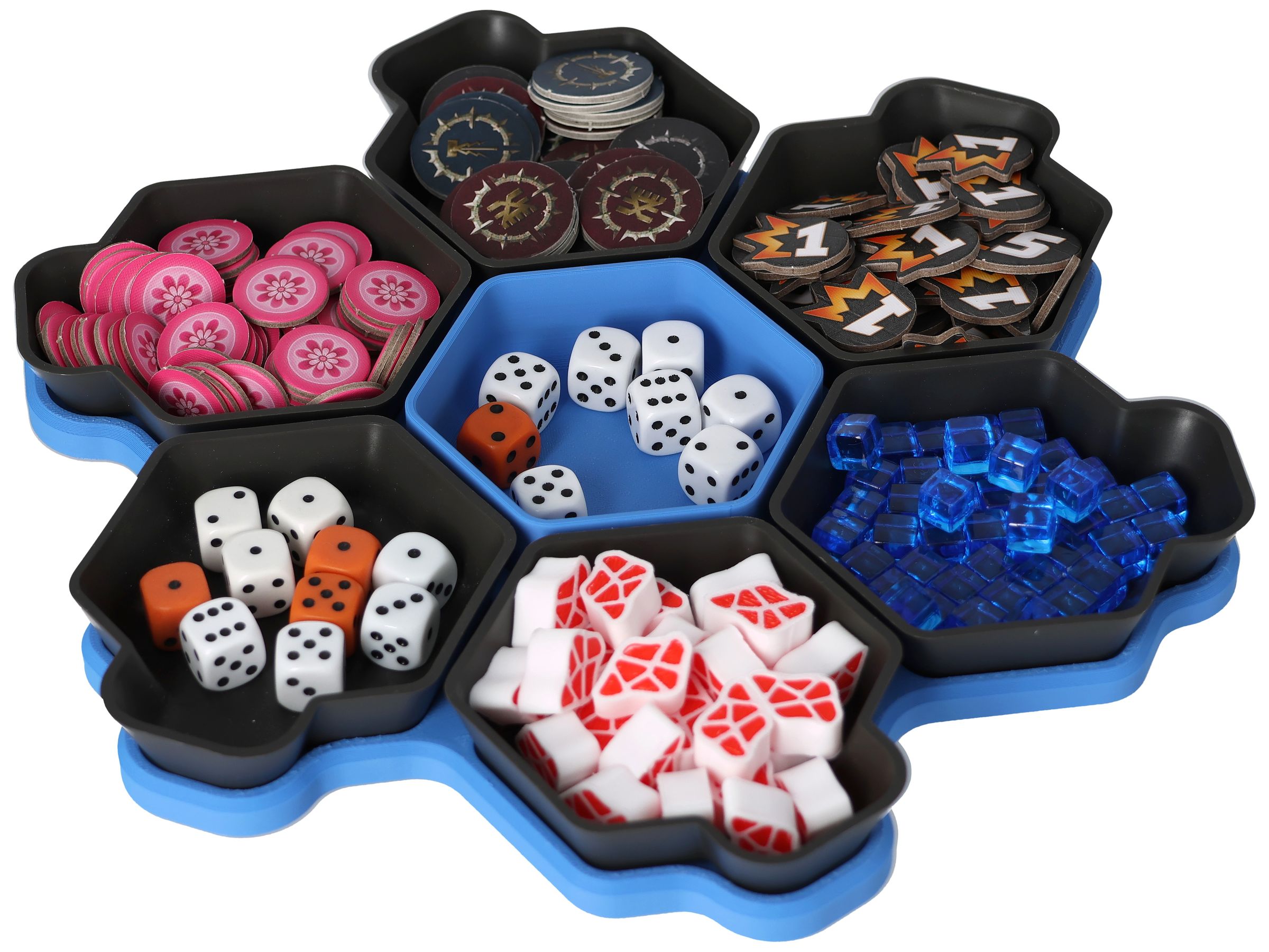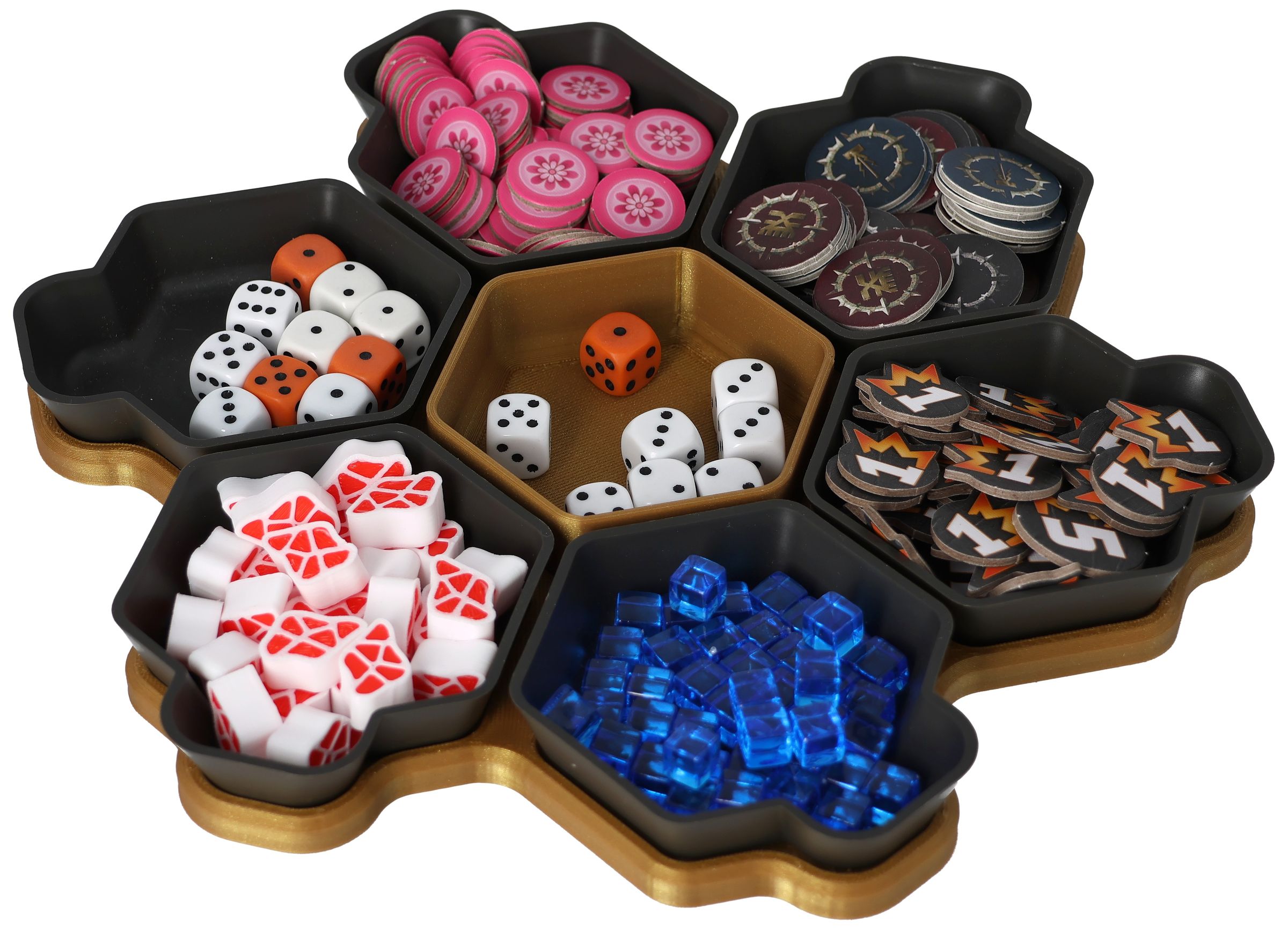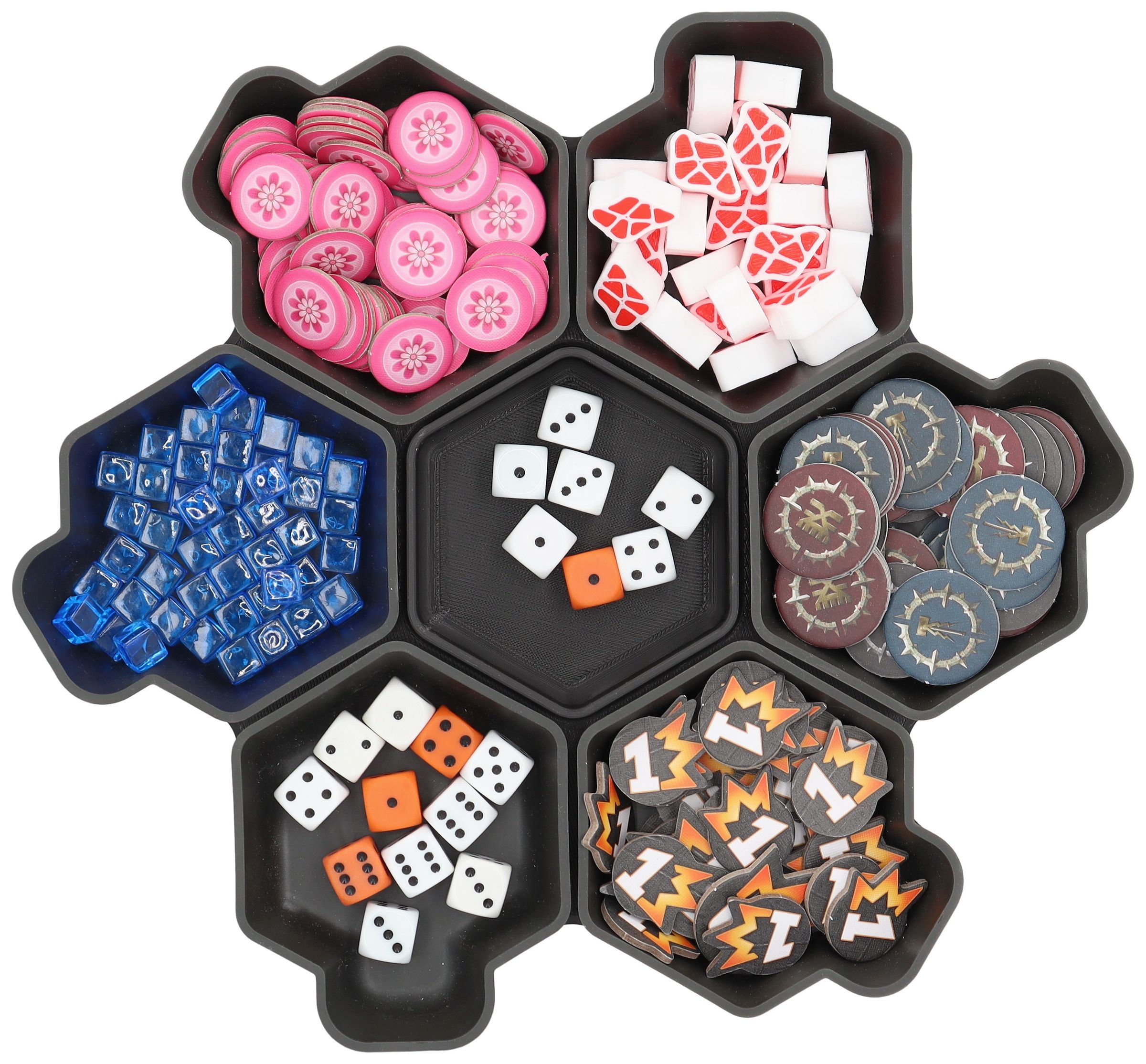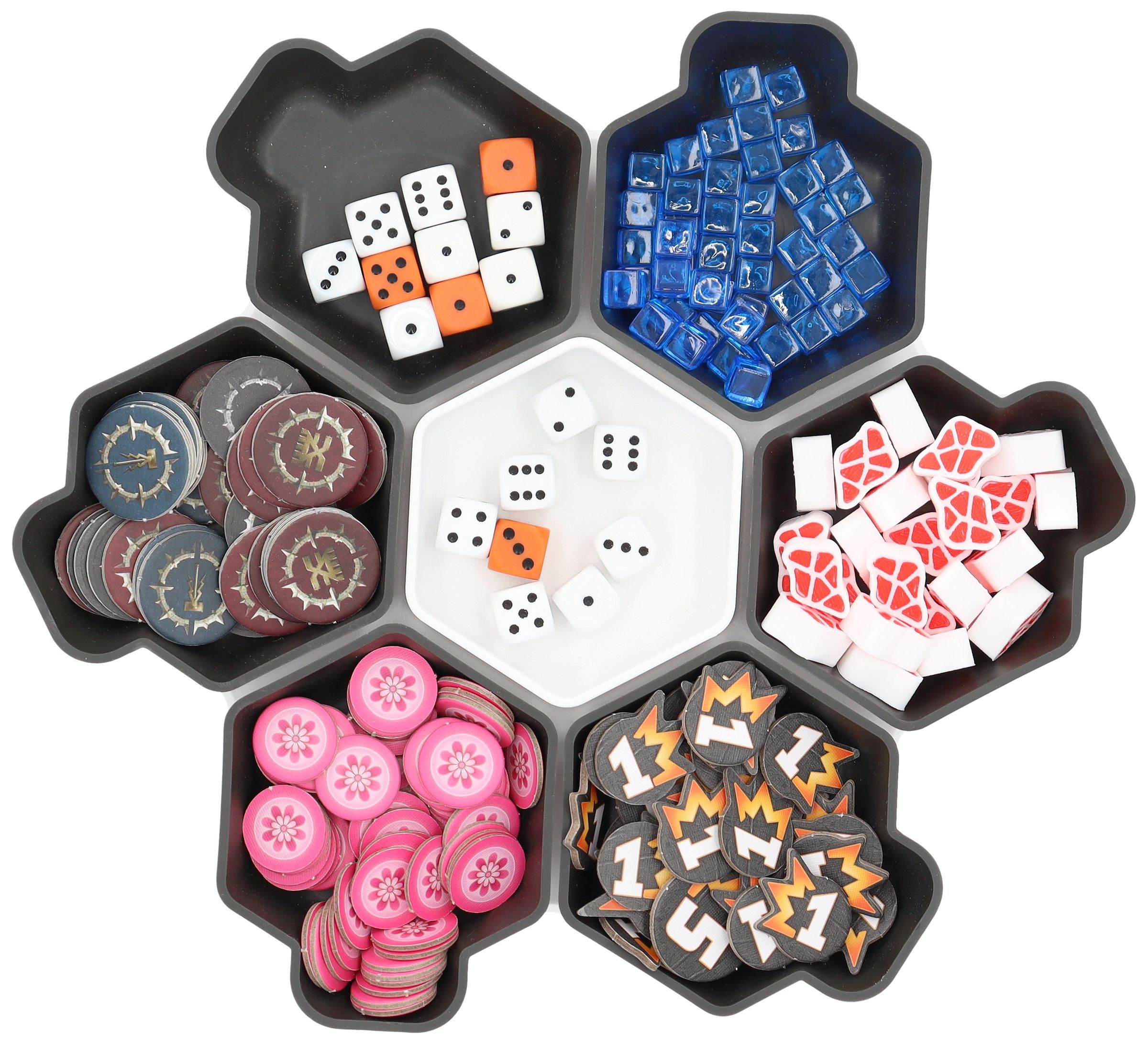 You need more space for your tokens, dice and tiles? Other colors would be nice too? No problem, the SHELL is also available as a 6-pack in six different colors and in the order-loving SHELL Core Box.