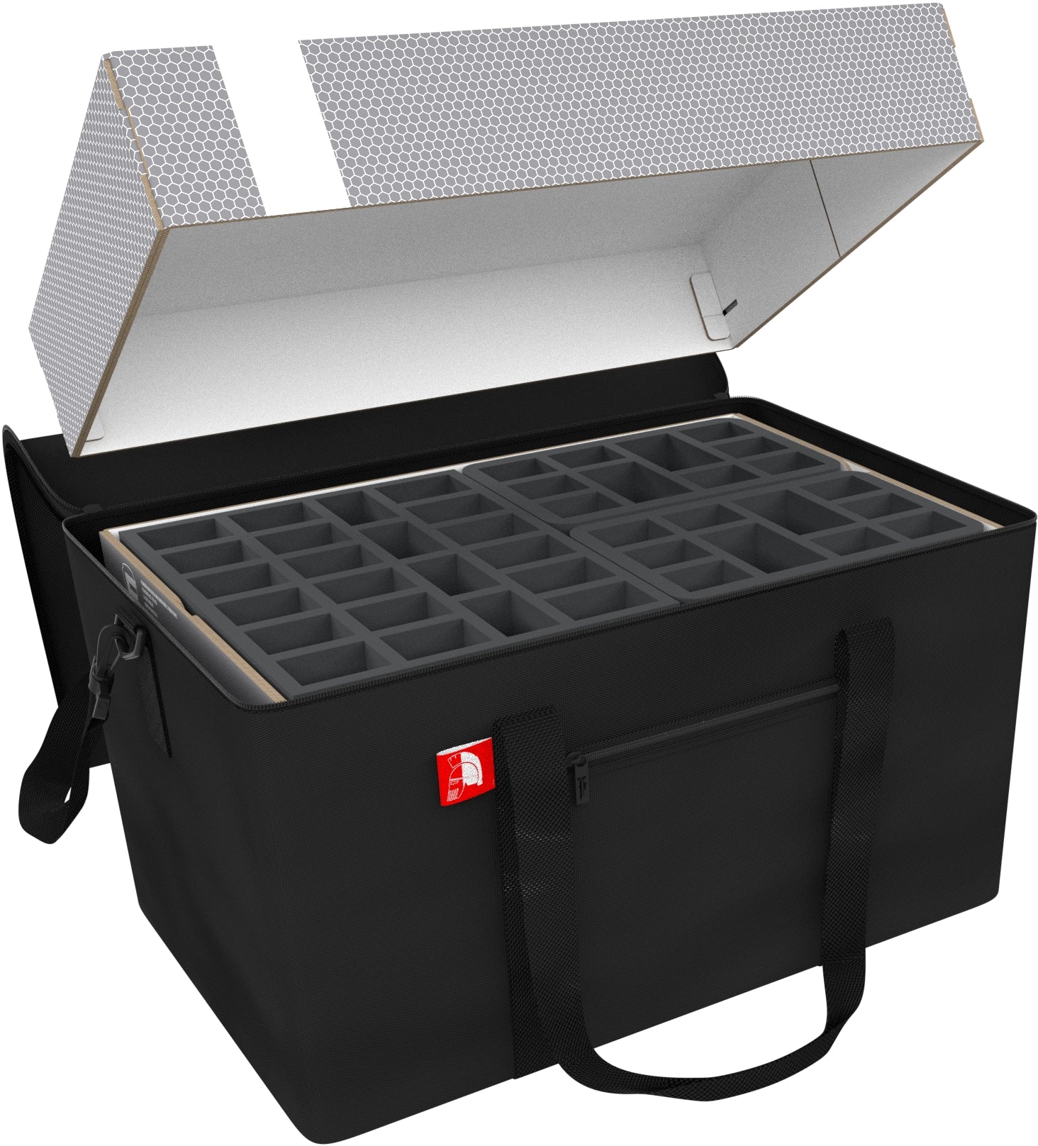 In this spacious Feldherr Transporter bag, including a Storage Box DSLB310 with foam, your miniatures are optimally protected. In the custom Feldherr foam trays you can safely transport up to 95 warrior figures, 1 tanks and 1 aircraft model to the battlefield.