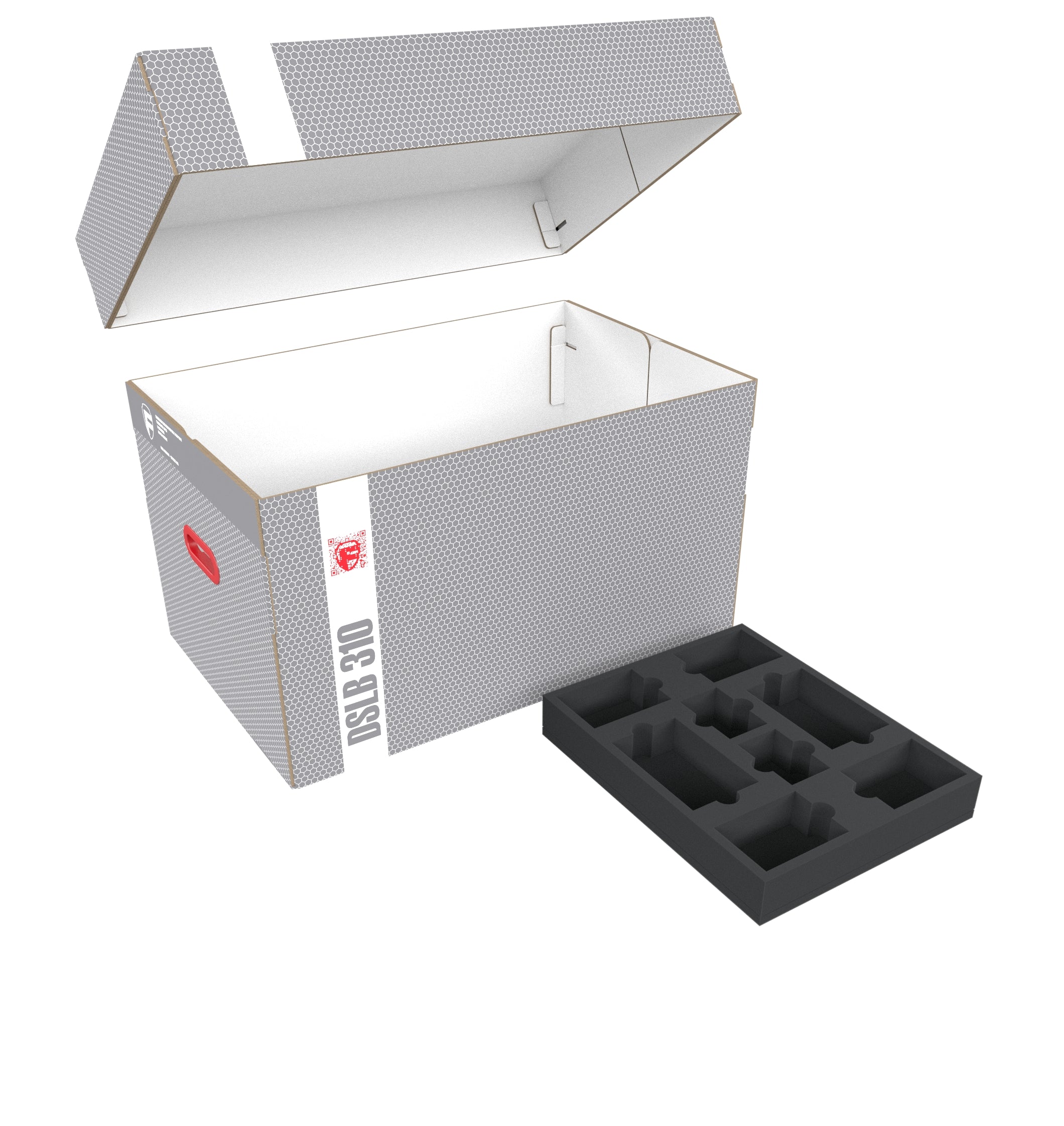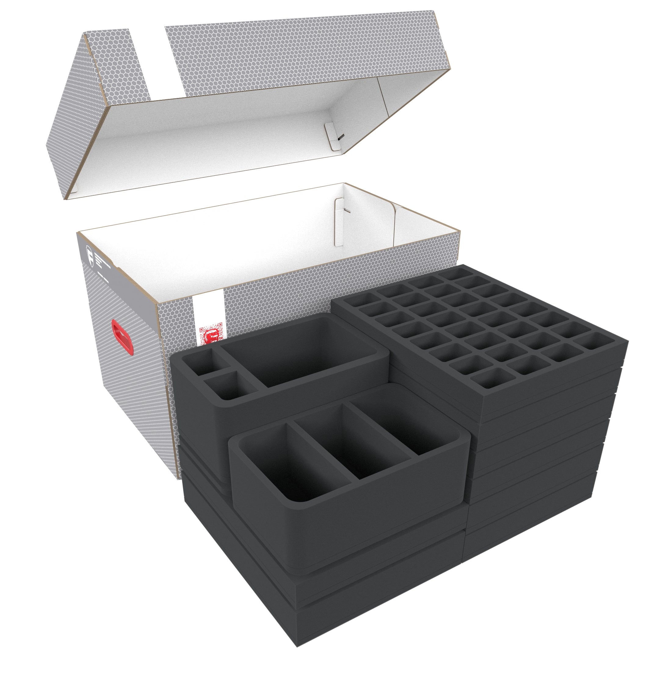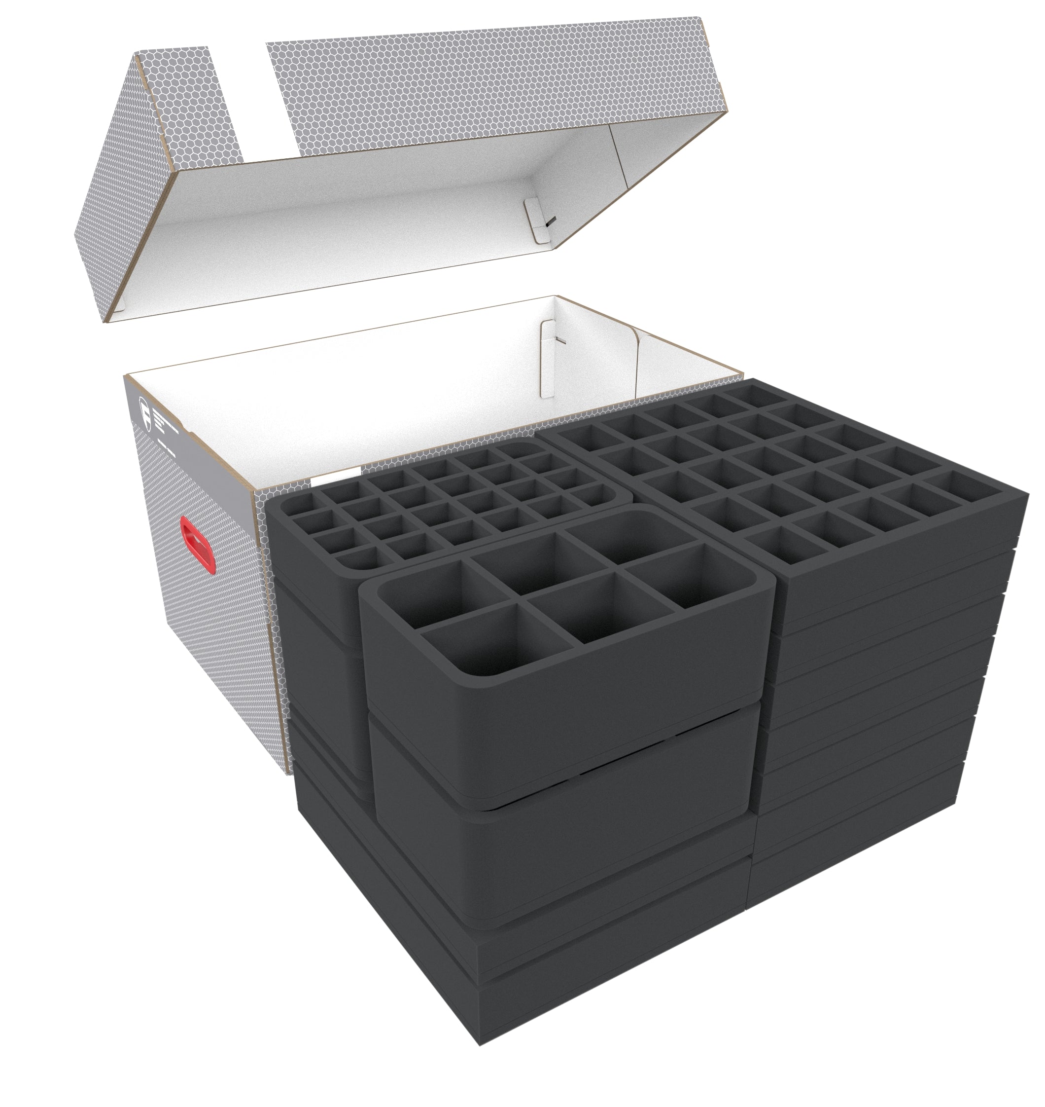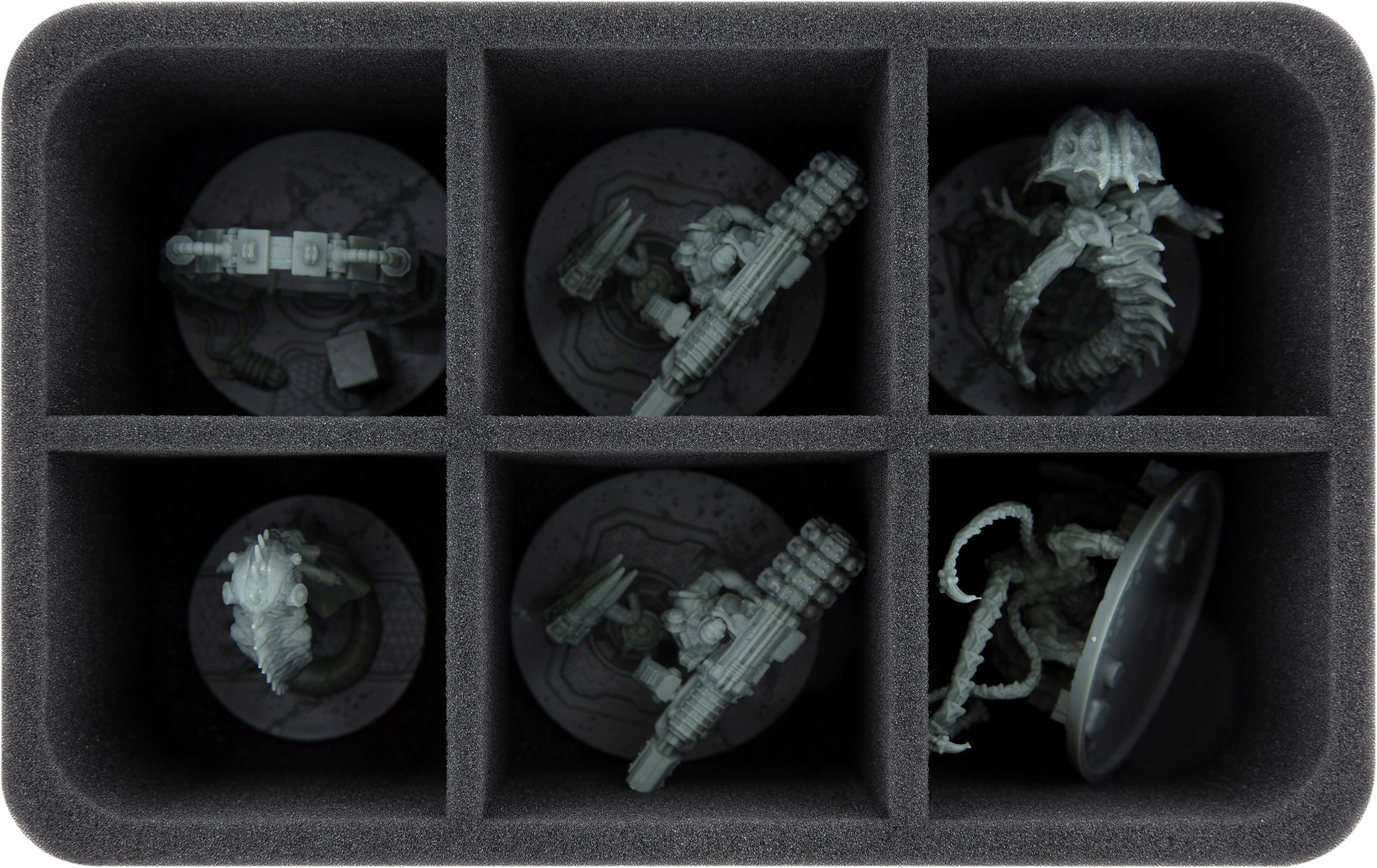 - 1 Half-Size foam tray with 6 compartments for larger miniatures (HSMECO100BO)