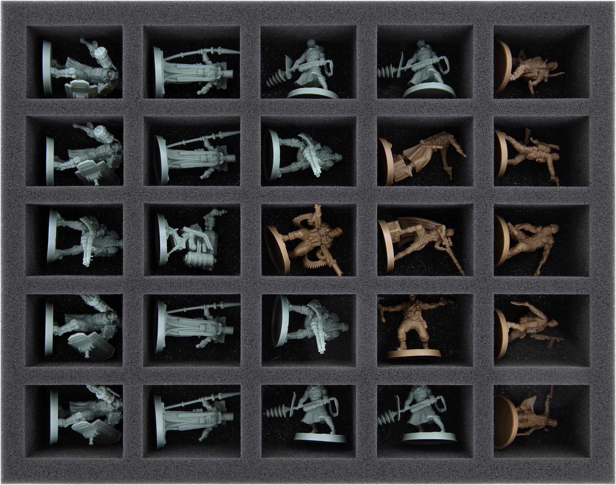 - 1 Full-Size foam tray with 25 compartments for heroes and similar sized miniatures (FSLQ050BO)
