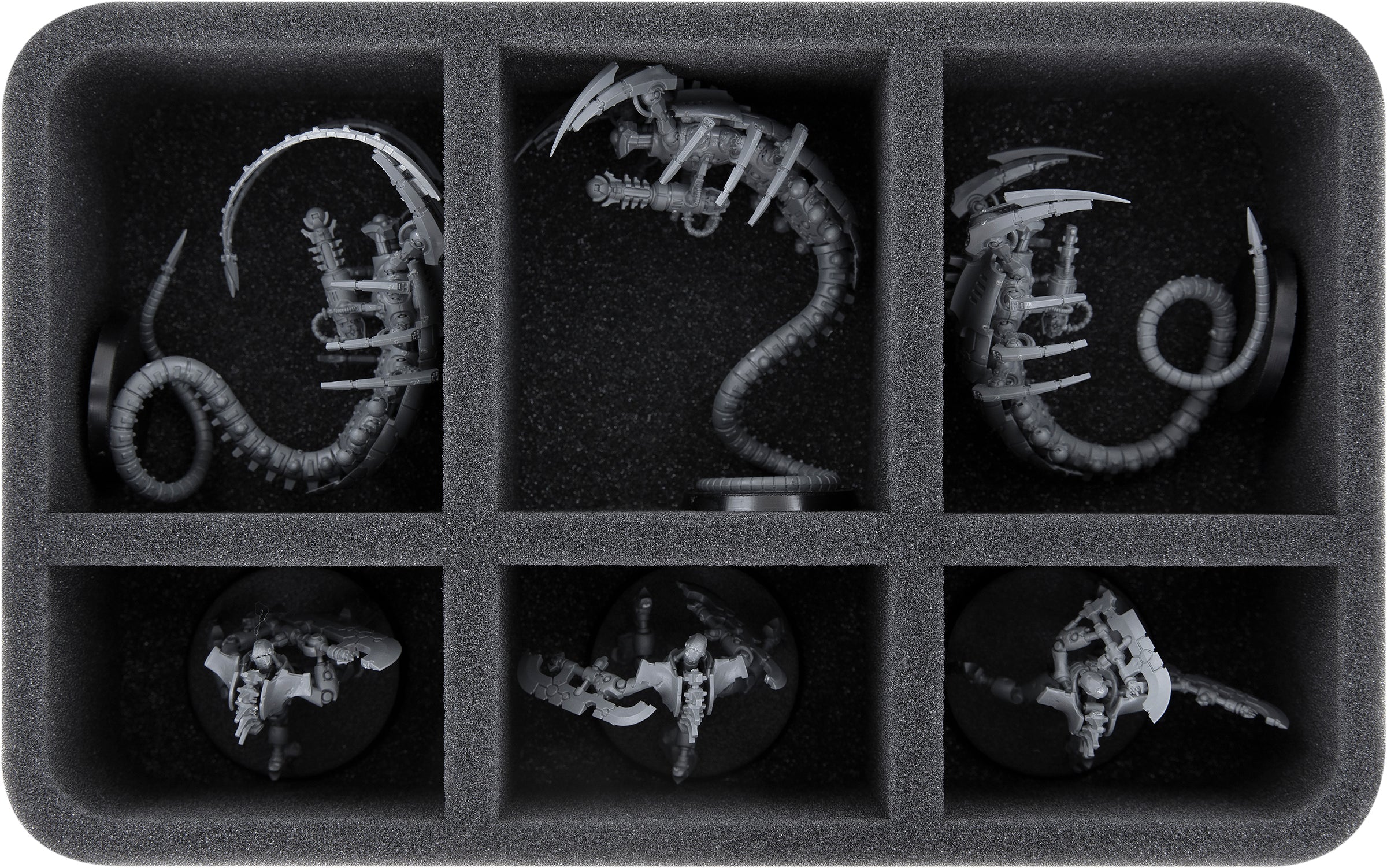 This Transporter-Set provides space for all units and premium miniatures. Whether the numerous infantry like Necron Warriors, Assault Intercessors or Lychguards, or the more expansive models like the Doomsday Ark, Triarch Stalker or Canoptek Reanimator - here, everything finds its place!