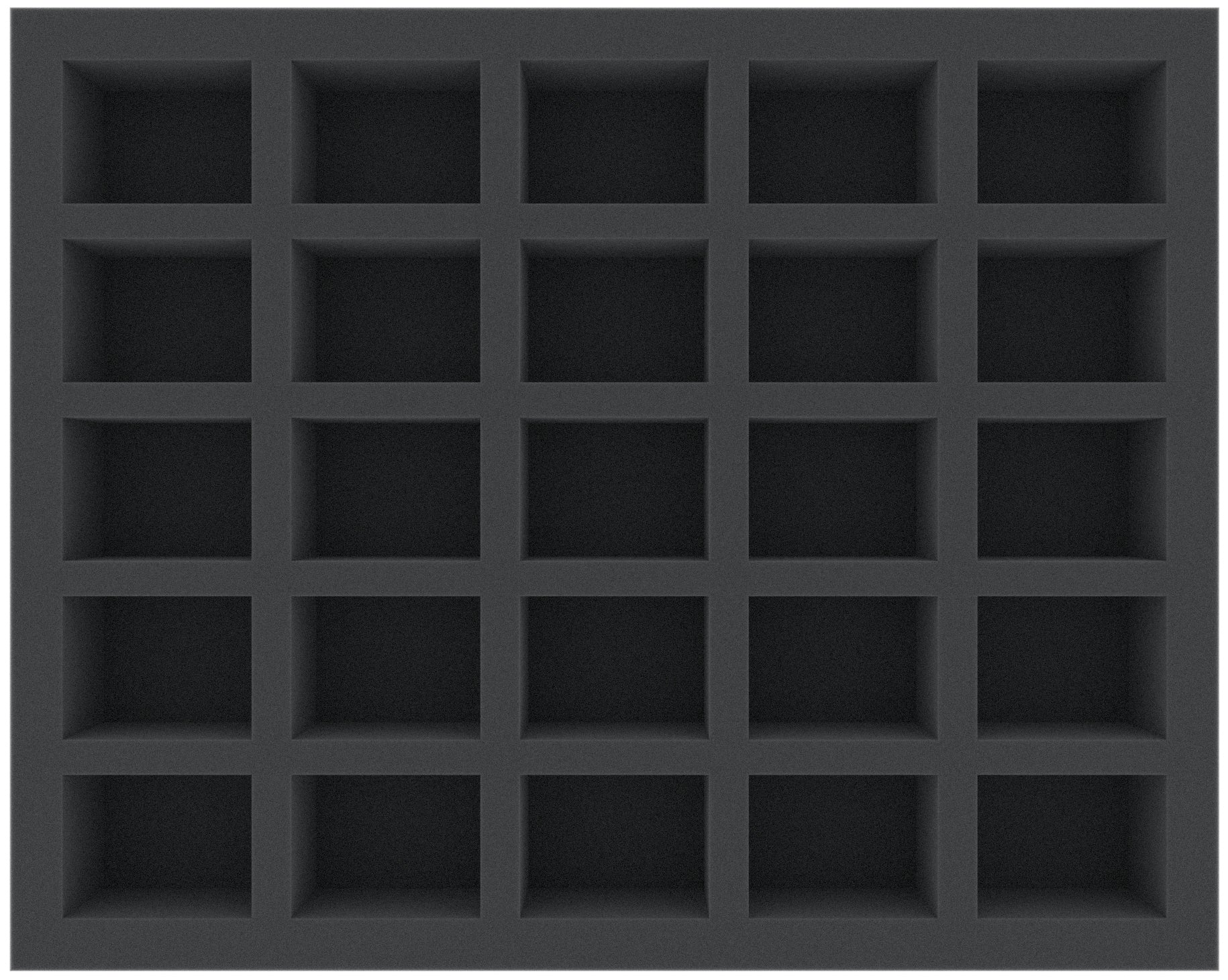 This Full-Size foam tray is divided into 25 individual compartments. It offers a safe place for up to 25 Questoris Knights of the Adeptus Titanicus. The miniatures are stored in individual compartments and the soft foam ensures that the miniatures are optimally protected from damage. The colors of painted models are preserved.