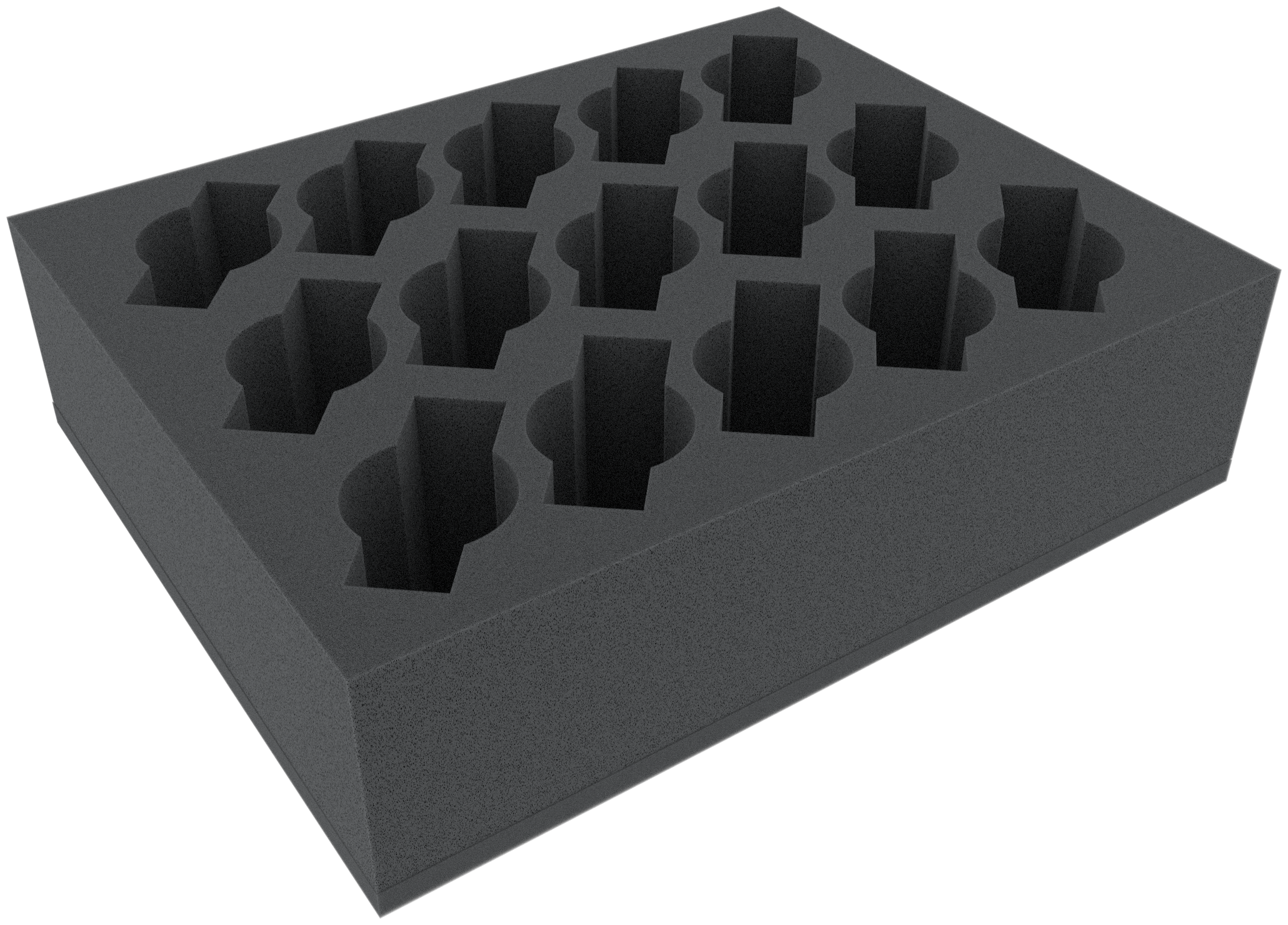 - The 15 compartments have the dimensions: 50 mm x 85 mm x 70 mm. The round compartments have a diameter of 50 mm. The rectangle has the base area of approx. 85 mm x 28 mm.
