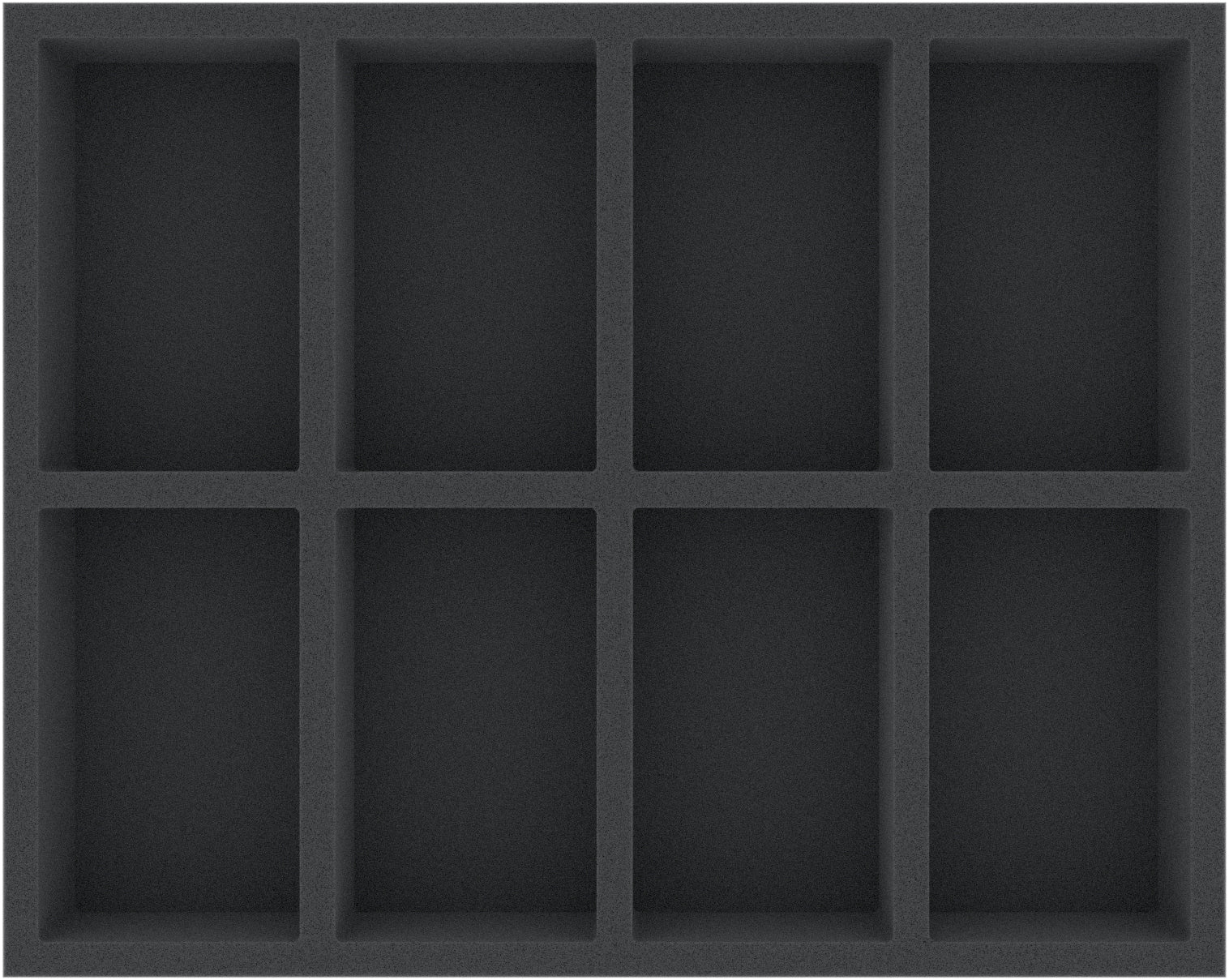 This Full-Size foam tray is divided into 8 compartments. The mat is optimally suited for the safe and clear storage of larger miniatures and for game material.
