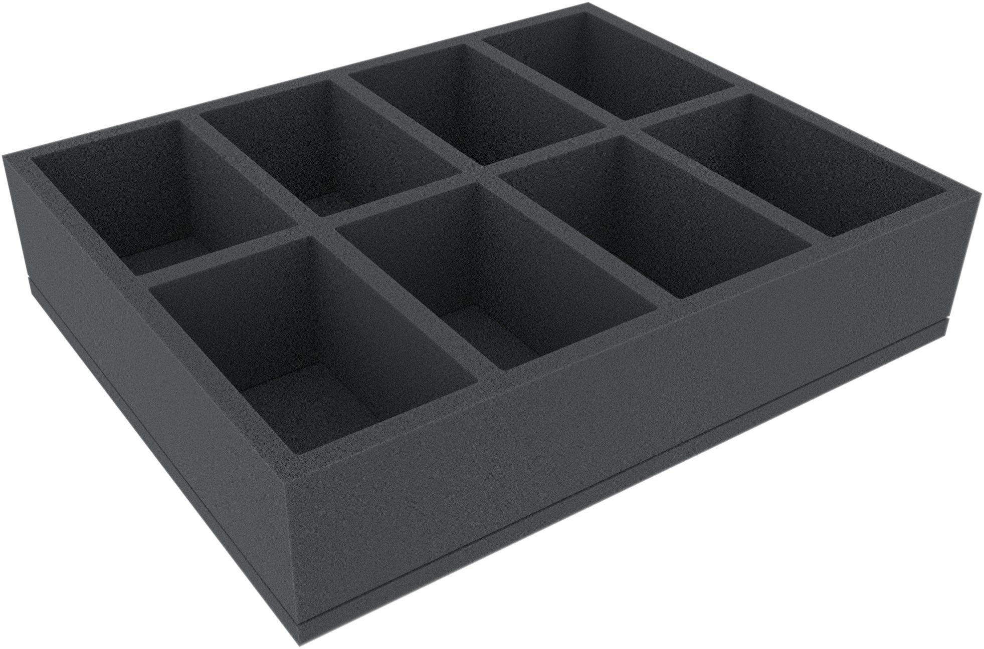 This Full-Size foam tray is divided into 8 compartments. The mat is optimally suited for the safe and clear storage of larger miniatures and for game material.