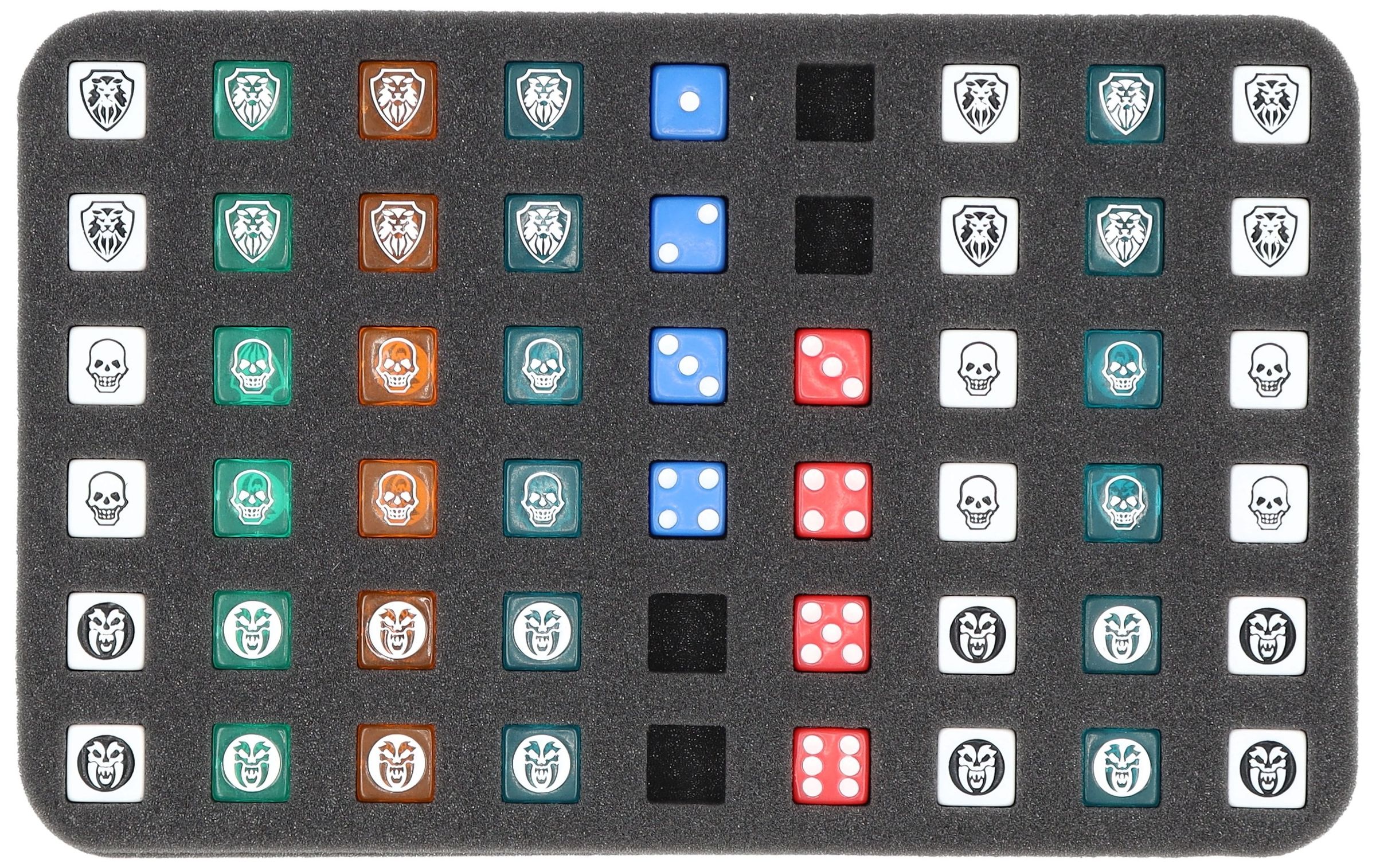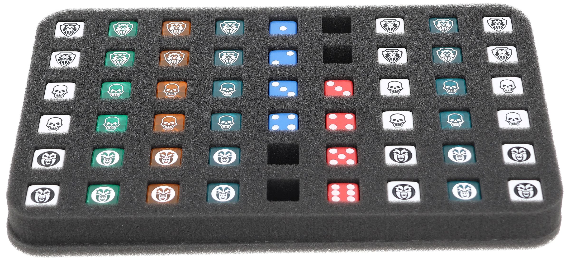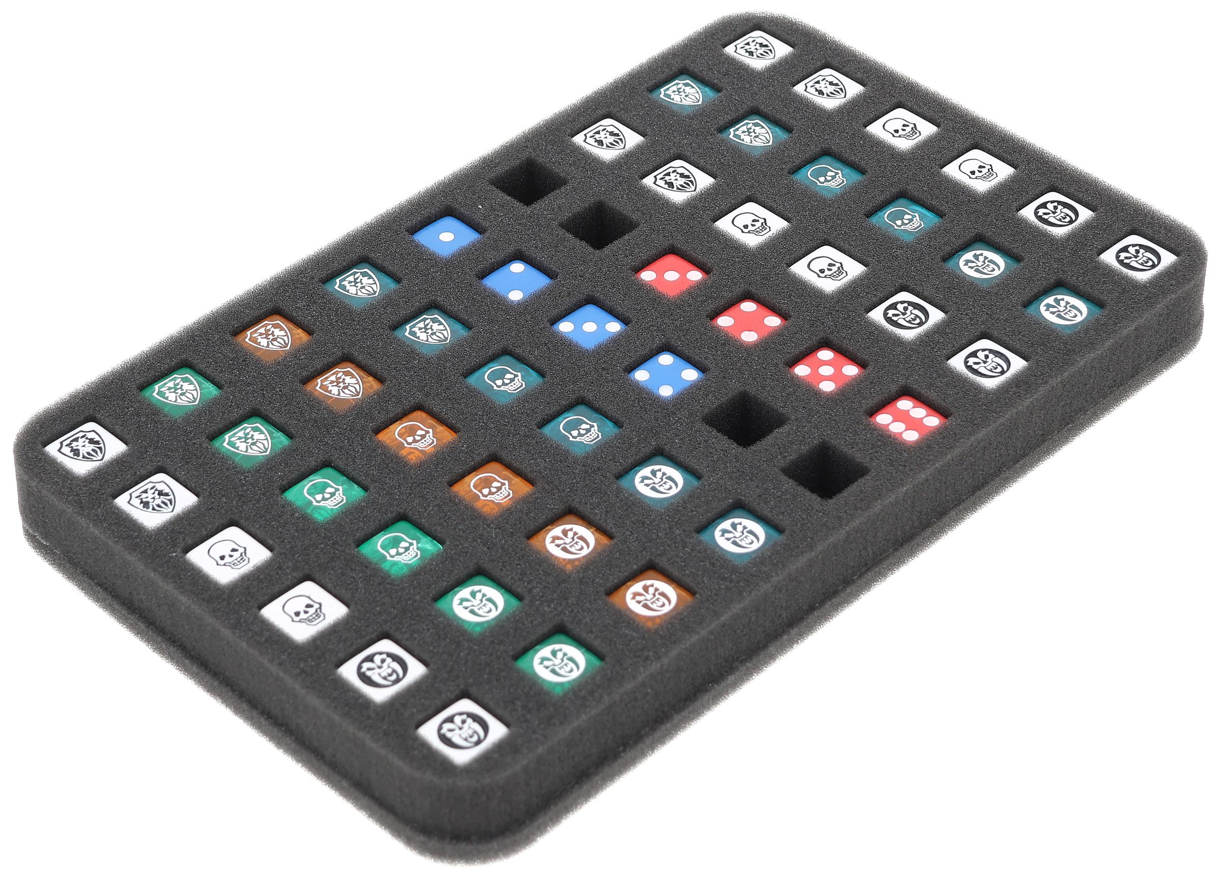 And to ensure that your Normal and Combat Dice are properly stored, we have the matching foam insert for you. Up to 54 dice are safely and neatly stored here.