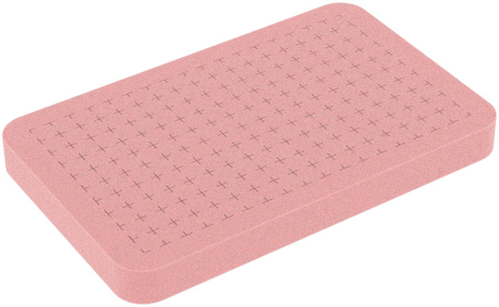 This foam is perforated with a raster of 14 mm x 14 mm. A circumferential border is not perforated and increases the stability of the fitted foam insert. The grid allows the tool-free adjustment of the foam inserts to your needs. The article will be delivered without bottom foam sheet. As a bottom we offer for example the articles HS010BESD or HS020BESD.