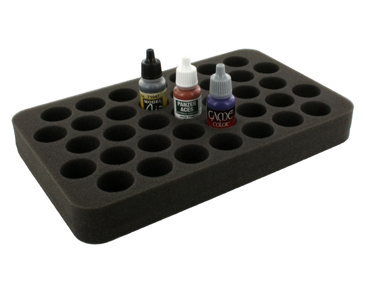 Up to 37 model color bottles can be stored here in a clearly arranged and transportable way. Thanks to the lightweight material, the foam insert is a wonderful addition to your hobby bag.
