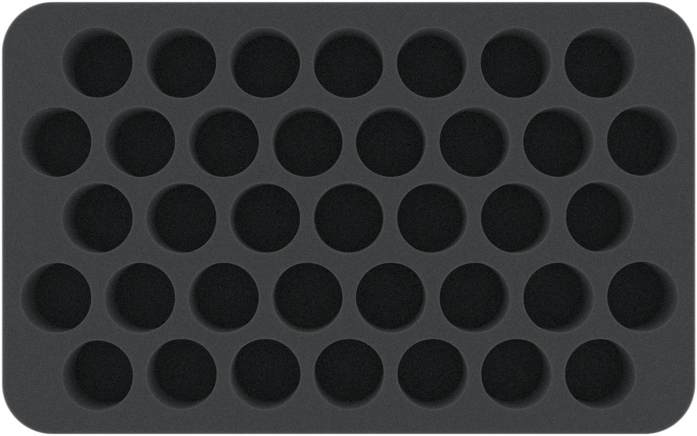 Diese Half-Size-Schaumstoffeinlage ist unterteilt in 37 Fächer gleicher Größe. Die runden Fächer eignen sich besonders gut zum Schutz von kleinen Figuren für verschiedene Brettspiele und Tabletop-Systeme.