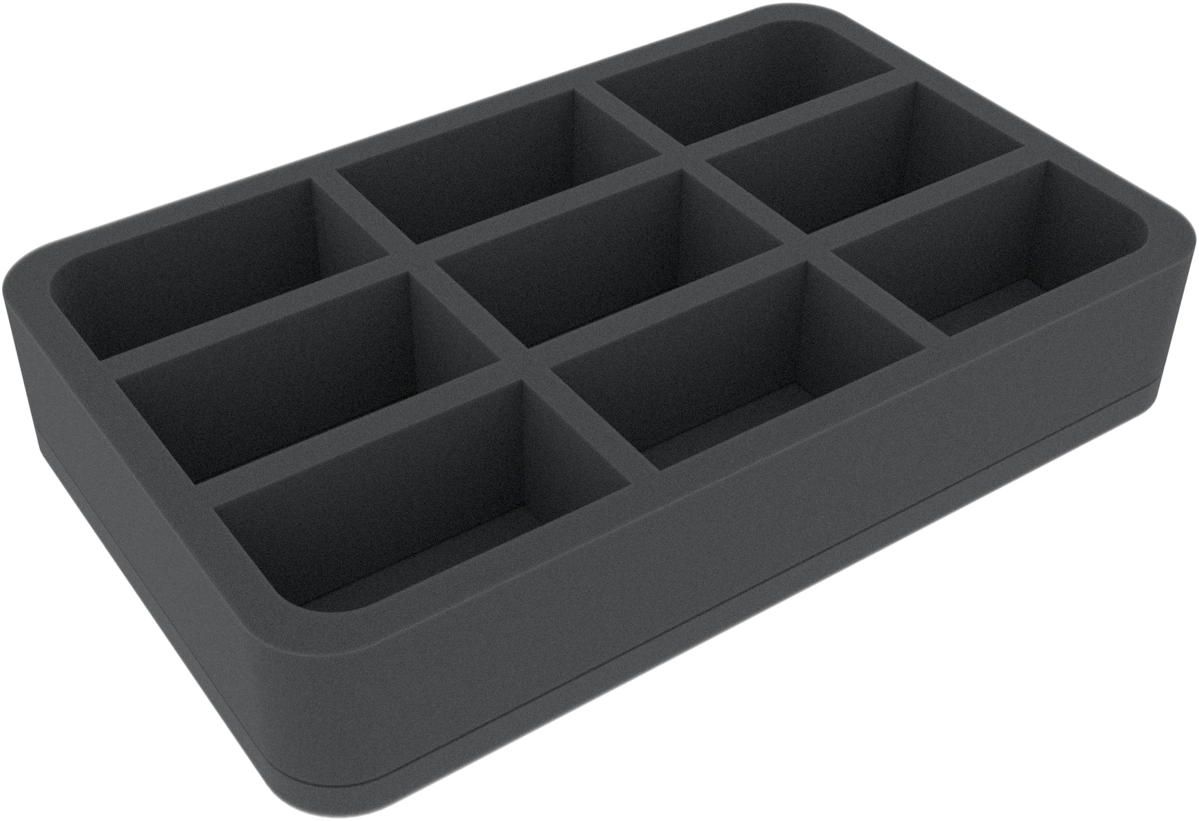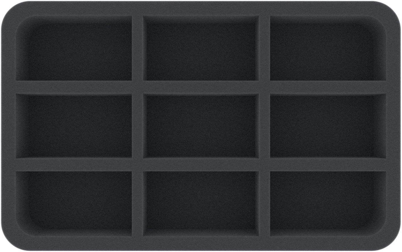 This Feldherr foam tray has nine compartments for the safe and orderly storage of your model cars in 1:64 scale. The tray is suitable for medium-high cars. The fine-pored foam provides optimal protection against damage – paint remains free from scratches, sensitive parts like e. g. mirrors remain intact.