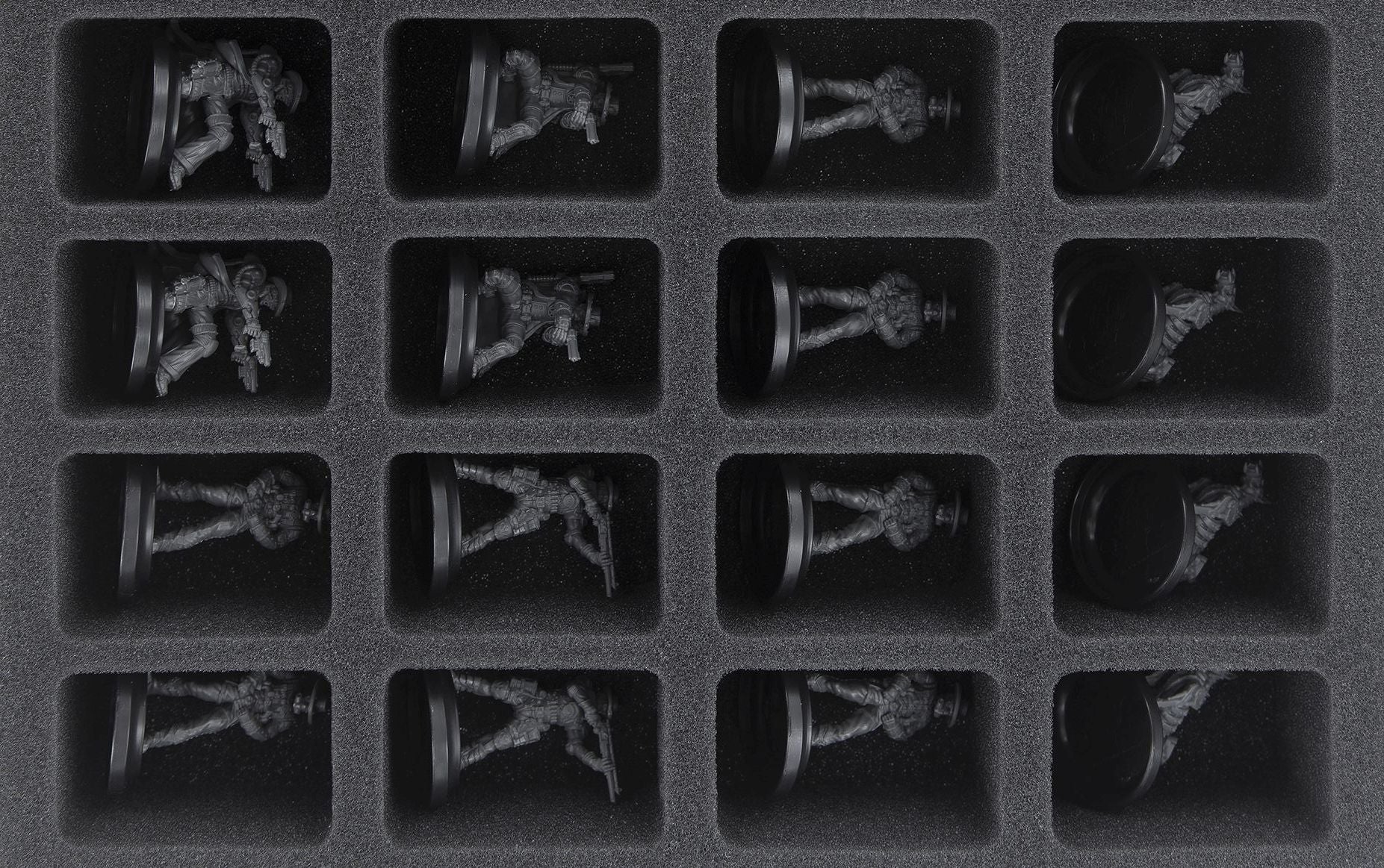 With this Feldherr foam tray up to 16 WWX miniatures are safely stored. The compartments of the same size are ideal for storing standard units on 30 mm bases (base size S) clearly arranged and well protected.
