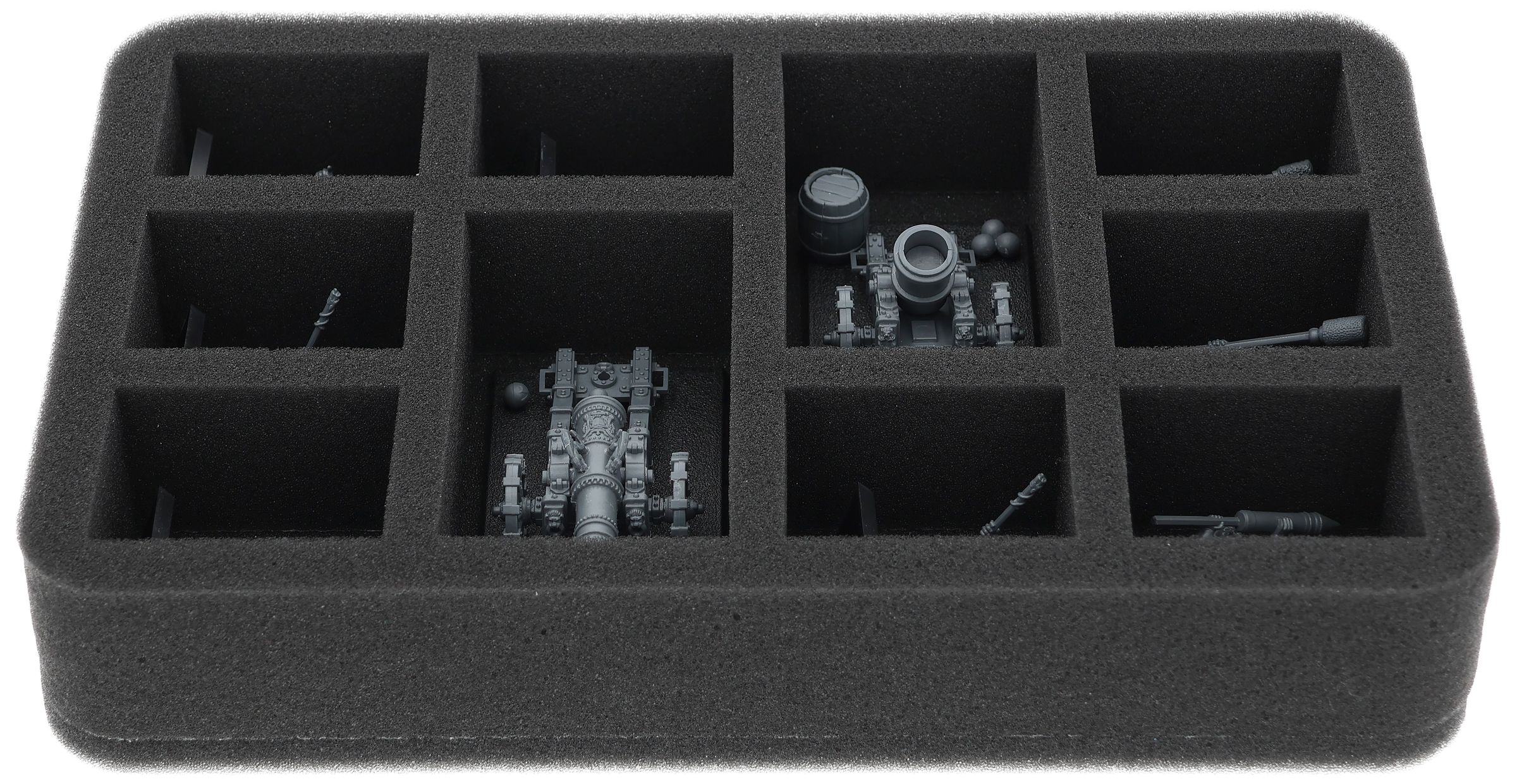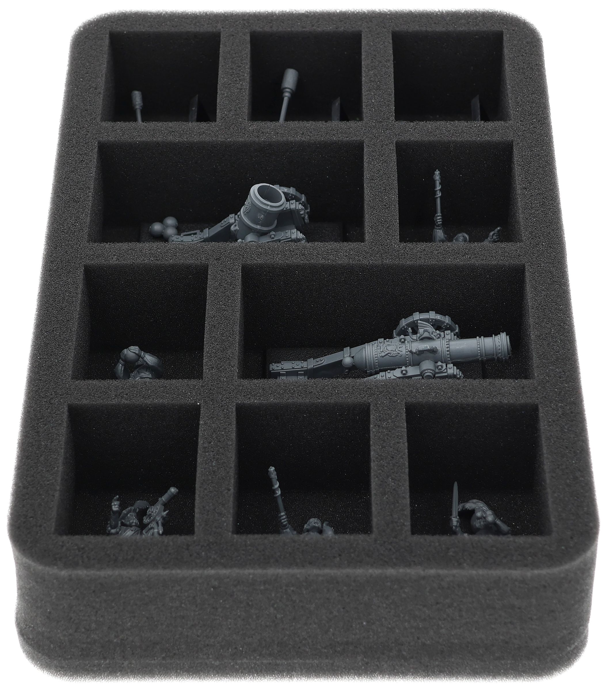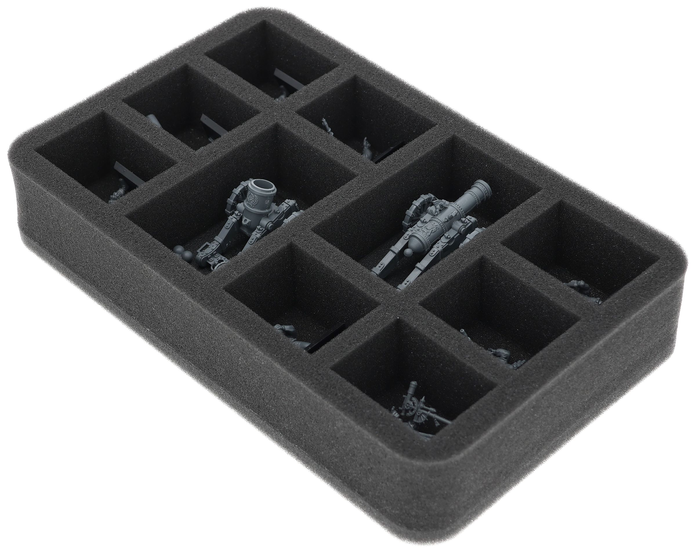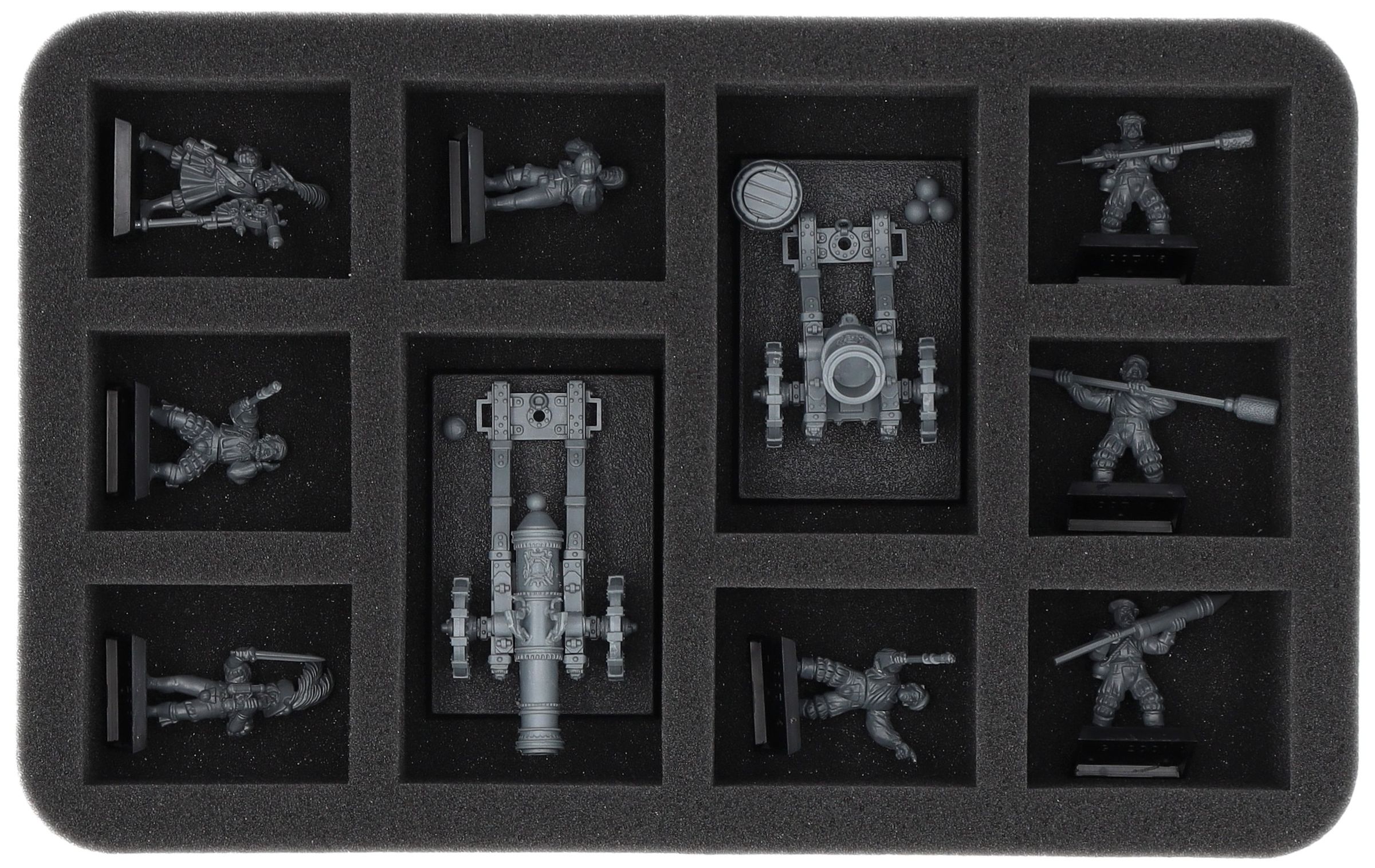 On this Feldherr foam tray you have space for up to 10 miniatures of your army. The insert is especially suitable for storing the Cannons and Mortars and similar sized models.