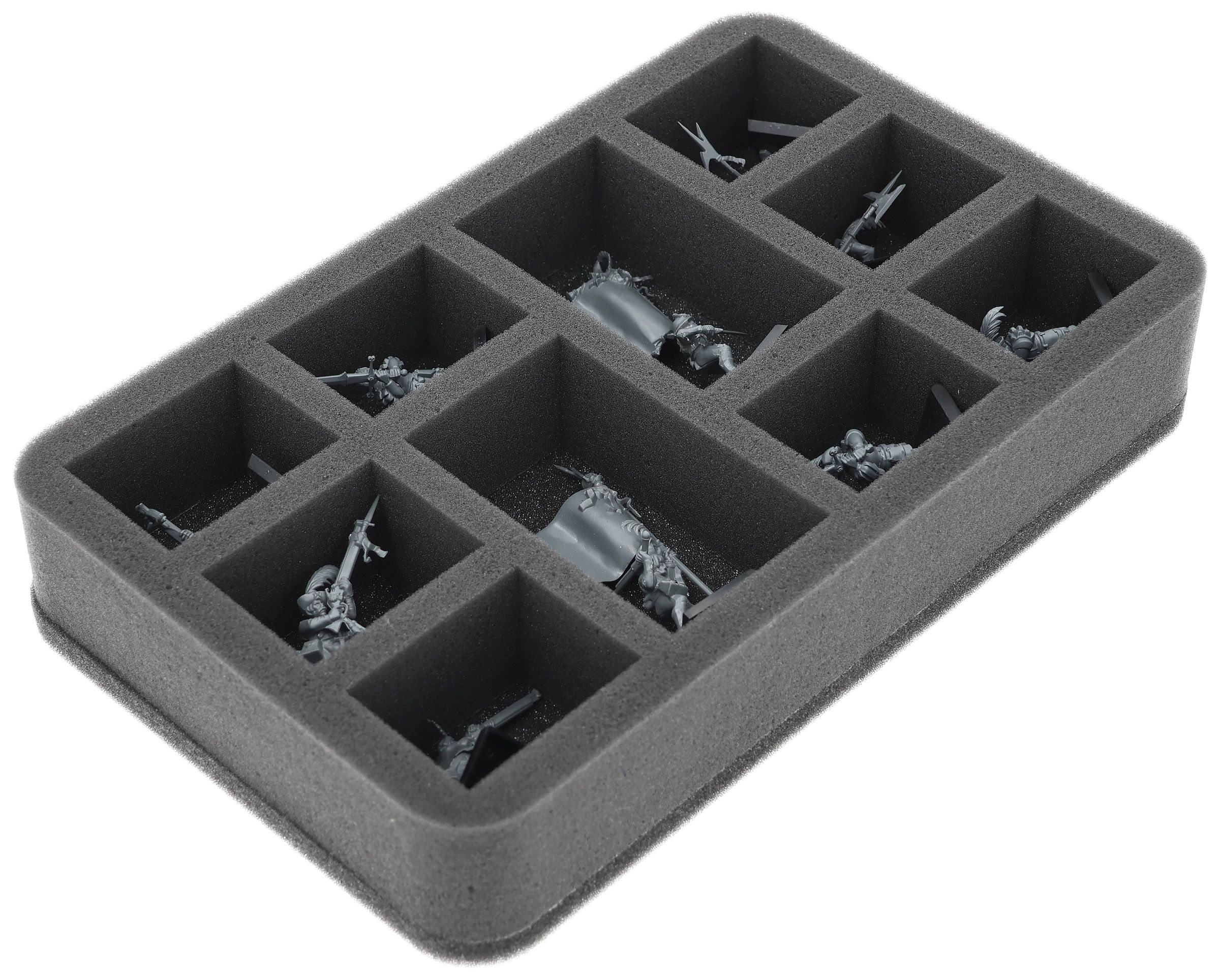 On this Feldherr foam tray you have space for up to 10 miniatures of your army. The insert is especially suitable for storing the State Missile Troops, Empire State Troops or Empire Greatswords and similar sized models.