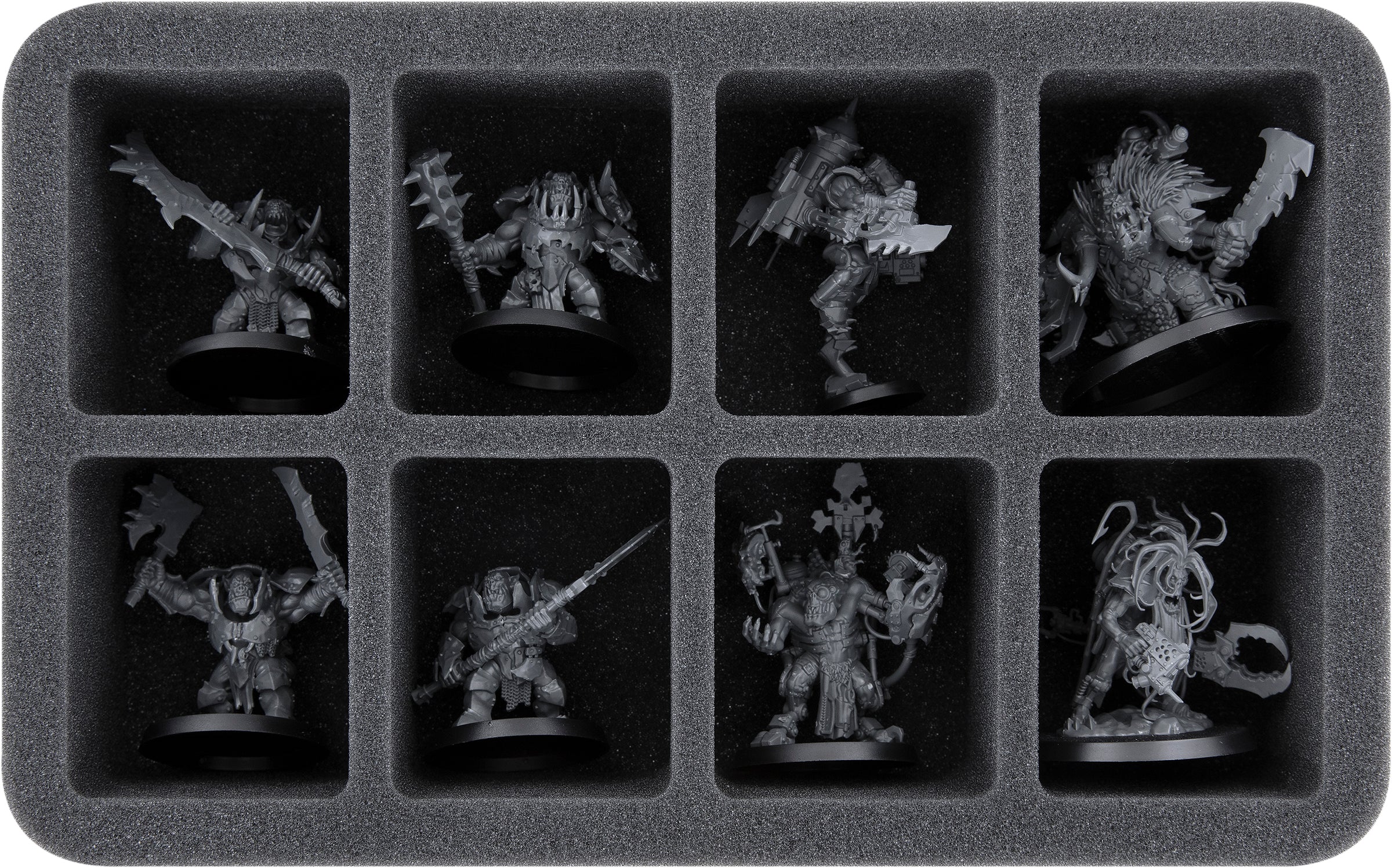 On this Feldherr foam tray you have space for up to 8 miniatures of your army. The insert is especially suitable for storing the Ork Brutes and similar sized models.